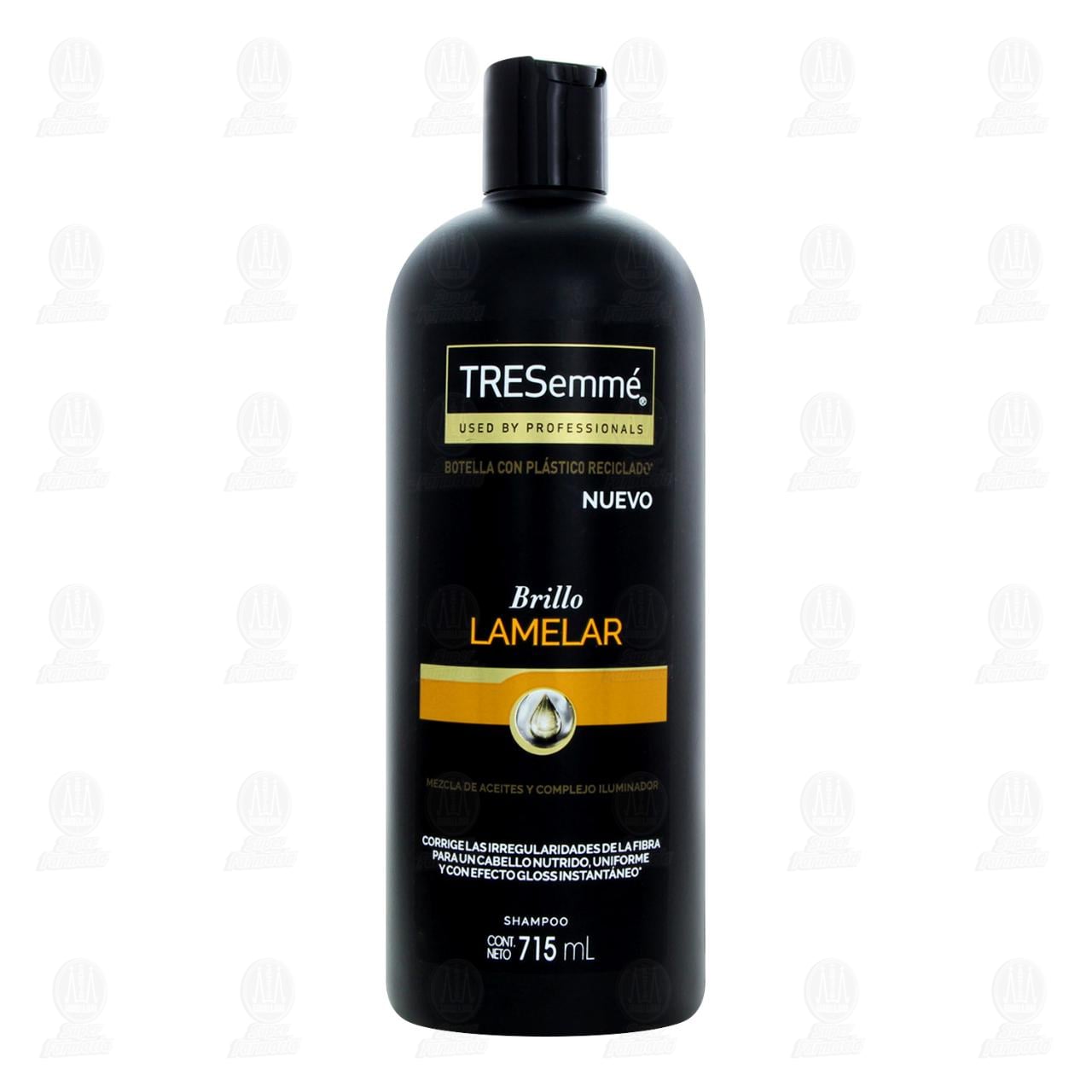 Shampoo Tresemmé Brillo Lamelar Corrige las Irregularidades de la Fibra para un Cabello Nutrido Uniforme y con Efecto Gloss Instantántaneo. Botella con 715 mililitros.
