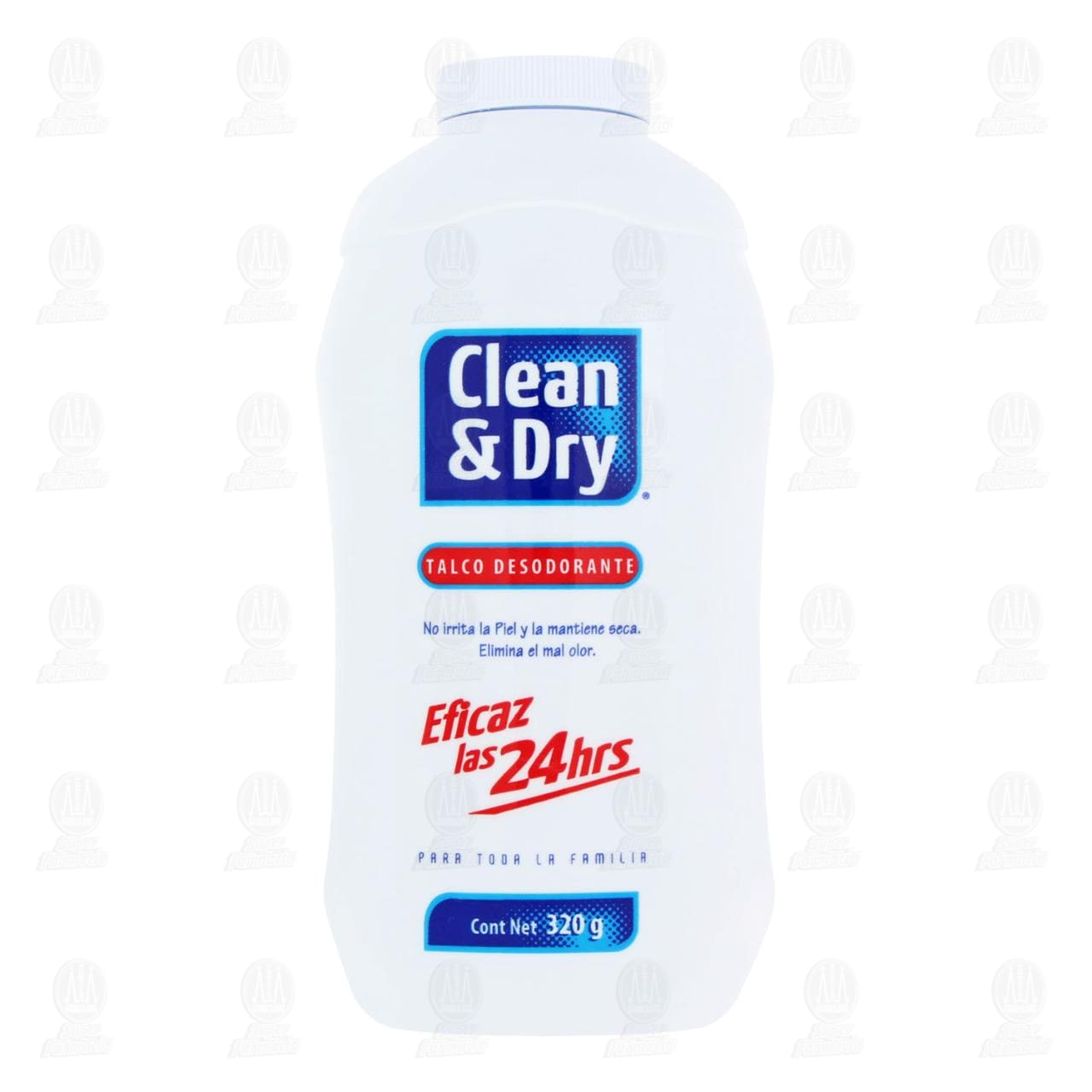Talco Desodorante Clean & Dry Eficaz las 24 Horas, 320 gr.