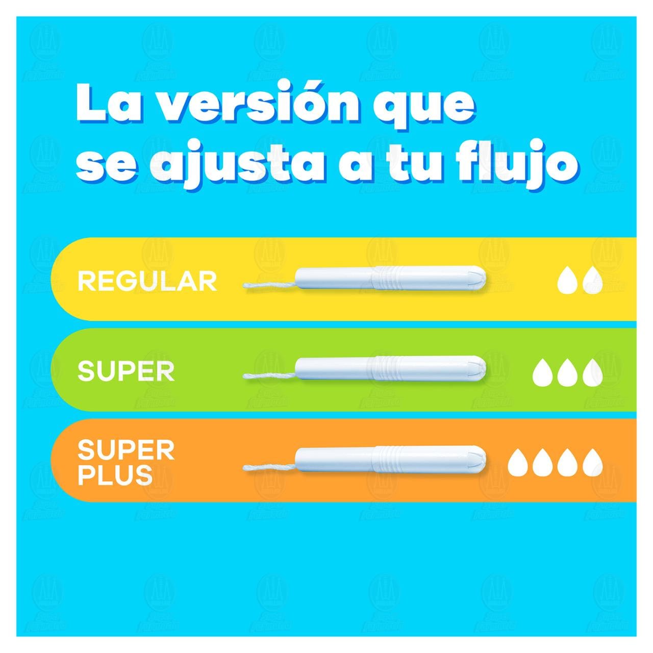Los tampones ofrecen niveles de absorbencia adaptados a cada una de las necesidades. Siempre use la absorbencia mínima para satisfacer sus necesidades. Cambie el tampón cada 4-8 horas. Los tampones están asociados con el Síndrome de Shock Tóxico (SST). El SST es una enfermedad poco común pero grave, que puede tener consecuencias fatales. Lea y guarde la información sobre el SST y el uso de tampones que viene incluida en el empaque. Puede usarse por un máximo de 8 horas. Usar solamente una vez. Mantener fuera del alcance de los niños. Mantener en lugar fresco y ventilado. No lo tires en el sanitario.Detalles del producto