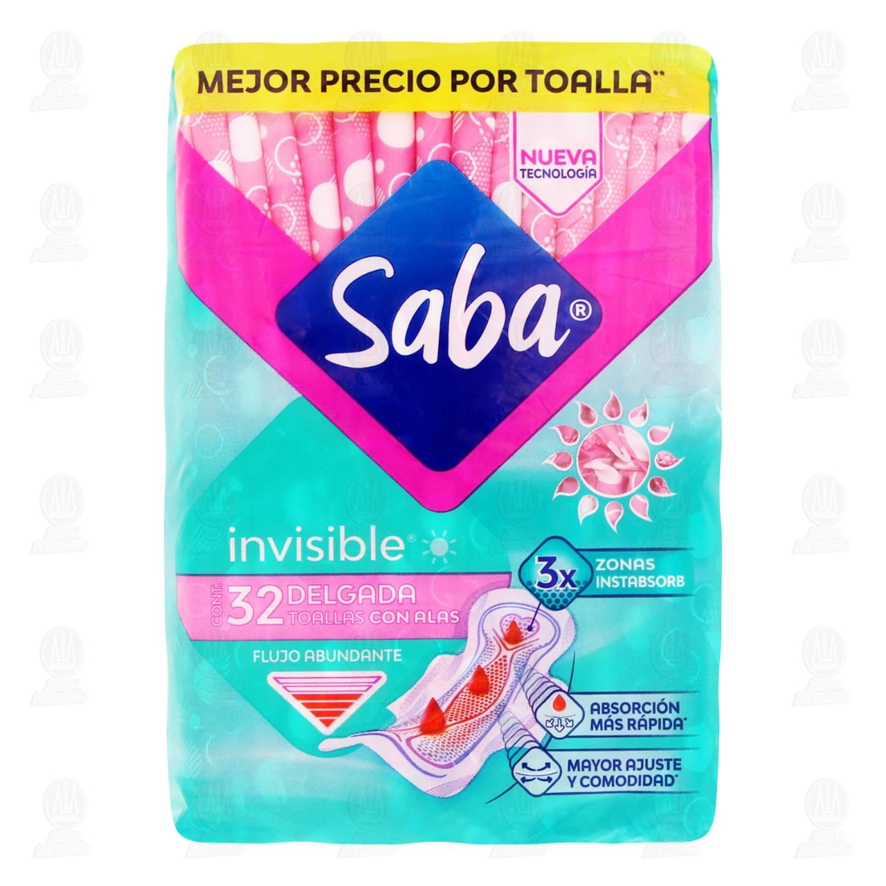 Toalla Femenina Saba Invisible con Alas. Paquete con 32 piezas.