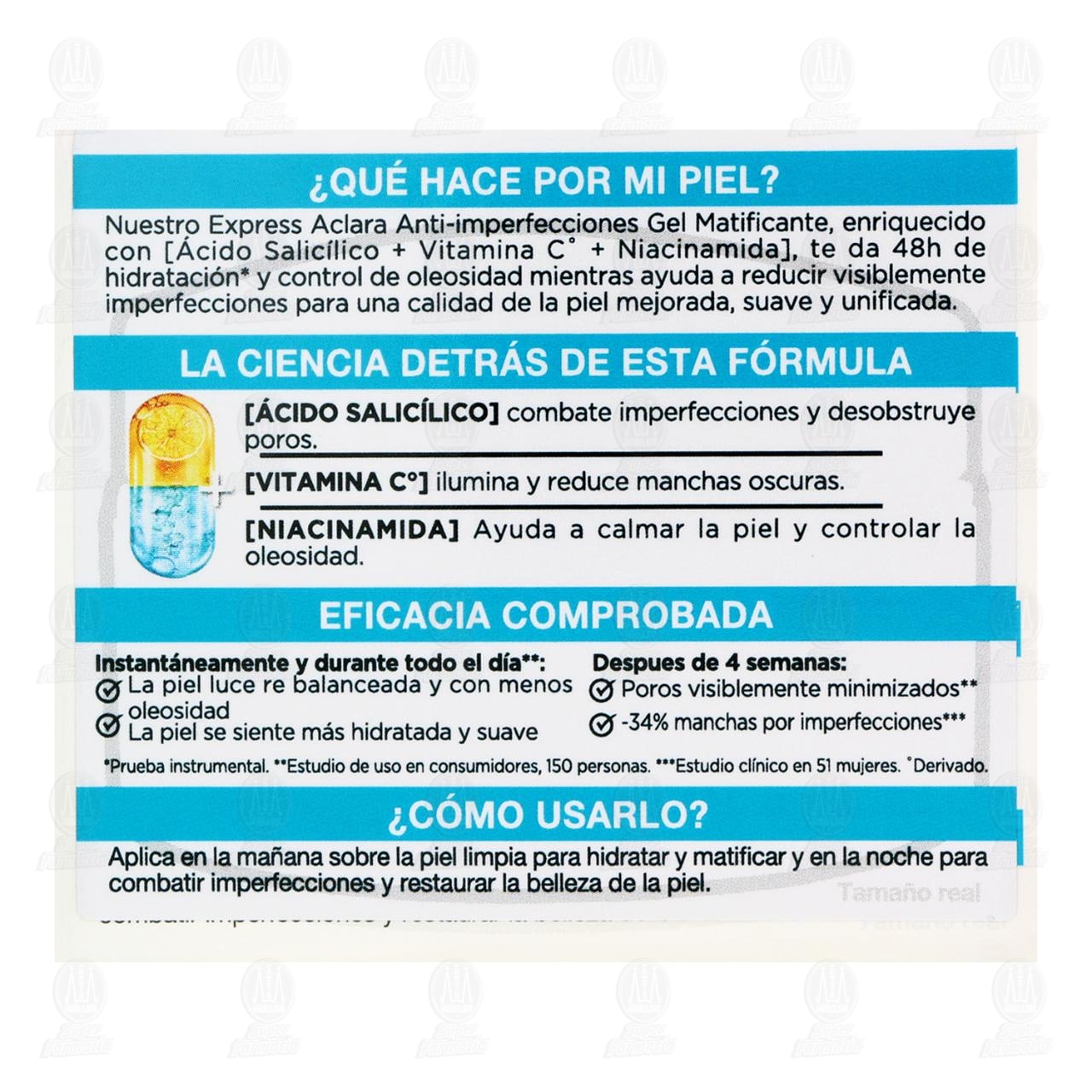 Gel Matificante Garnier Skin Active Express Aclara Anti-Imperfecciones Enriquecido con Ácido salicílico + Vitamina C + Niacinamida, 48 h de Hidratación y Control de Oleosidad para una Piel Mejorada, Suave y Unificada. Contiene 50 mililitros.