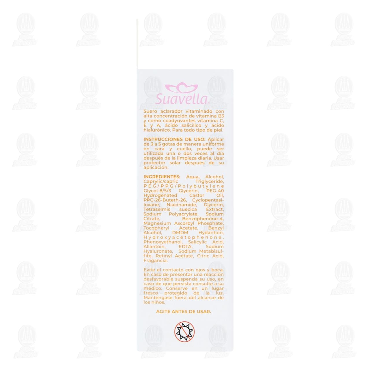 Sérum Antimanchas Suavella Aclarante + Ácido Hialurónico, Suero Aclarador Vitaminado. Frasco con 30 mililitros.