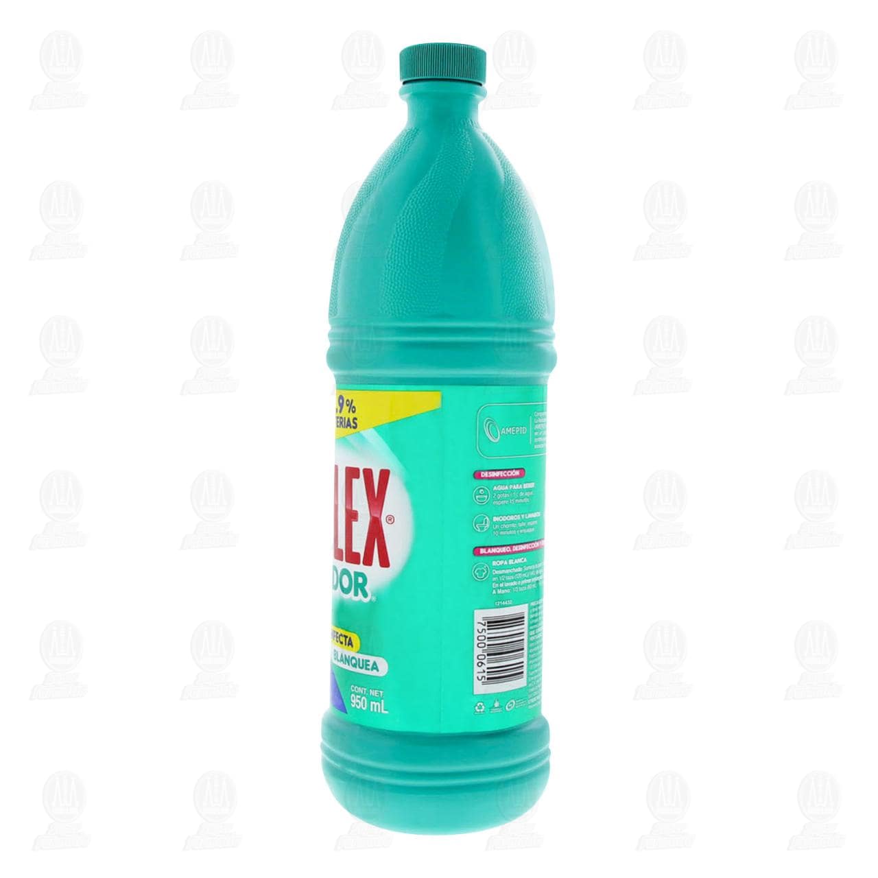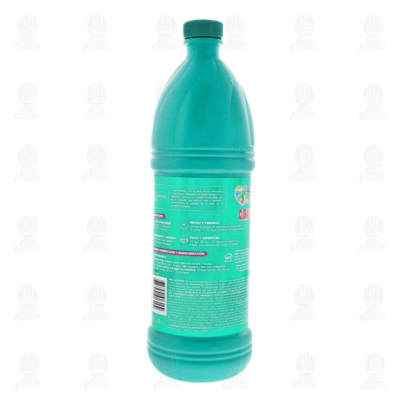 No lo use directamente en la ropa, dilúyalo en agua según las indicaciones. Evite el remojo prolongado y dosis mayores a las recomendadas. Desinfección de agua: utilizar con agua de abastecimiento público. Para telas blancas de algodón, lino y poliéster. En caso de dudas probar antes en un área oculta y pequeña de la prenda o superficie a limpiar. No lo use en seda natural, piel, lana virgen, o fibras no especificadas aquí. No lo use en plata, acero inoxidable, mármol o madera. No se deje al alcance de los niños. No mezcle con otros productos químicos que contengan ácido y/o amoniaco. Evite la inhalación prolongada. Úselo en áreas bien ventiladas. Puede provocar irritación en piel y mucosas, si tiene piel sensible use guantes. Si ocurre contacto con los ojos o con la piel lave con abundante agua por lo menos 15 minutos. En caso de ingesta no provocar el vómito, tomar abundante agua, llame al médico y aporte esta etiqueta. Conserve el envase tapado en posición vertical en un lugar fresco y alejado de la luz.Detalles del producto