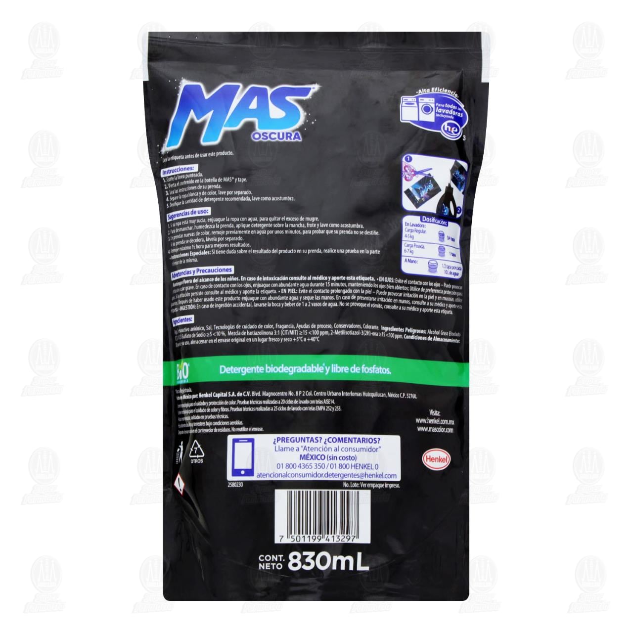 Detergente Líquido MAS Color Oscuros Intensos, 830 ml.