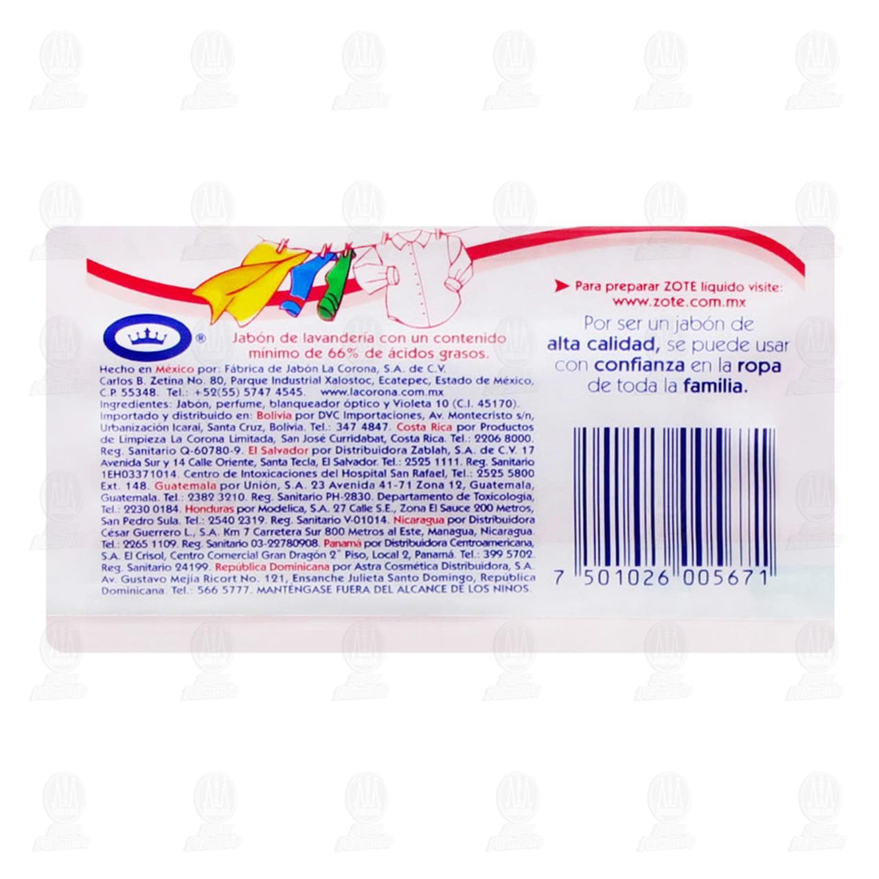 Jabón para lavandería Zote Rosa en barra, ideal para la ropa de toda la familia. Contiene 400 gramos.