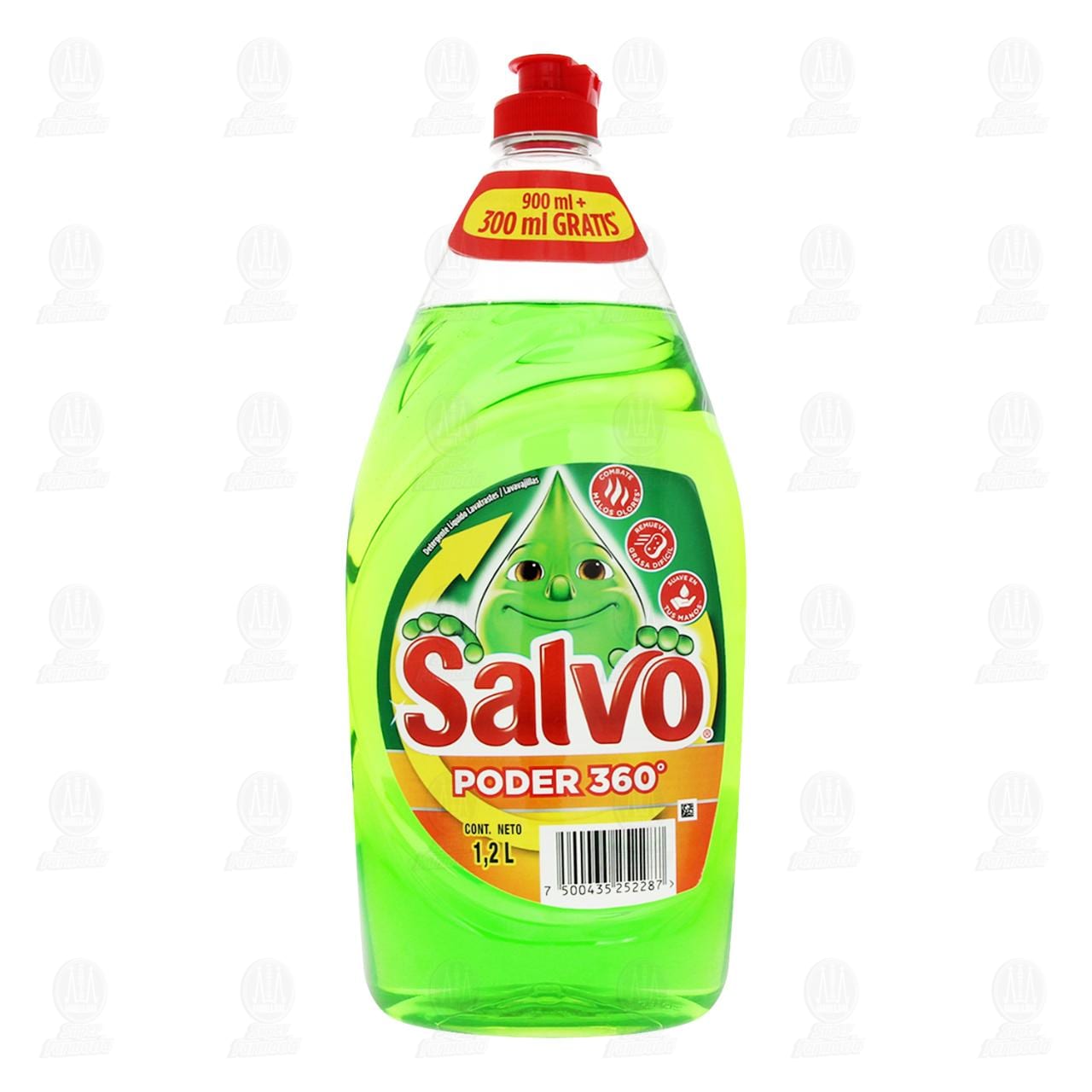Detergente Líquido Lavatrastes Salvo Poder 360°, Combate malos olores y remueve grasa difícil. Envase con 1.2 litros.