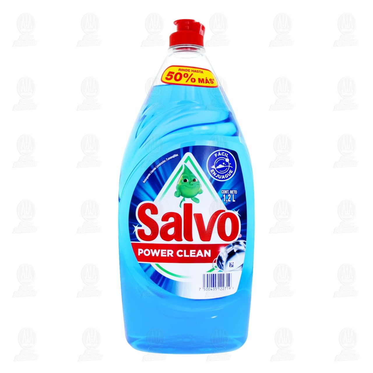 Detergente líquido Salvo Power Clean, remueve cochambre. Envase con 1.2 litros.