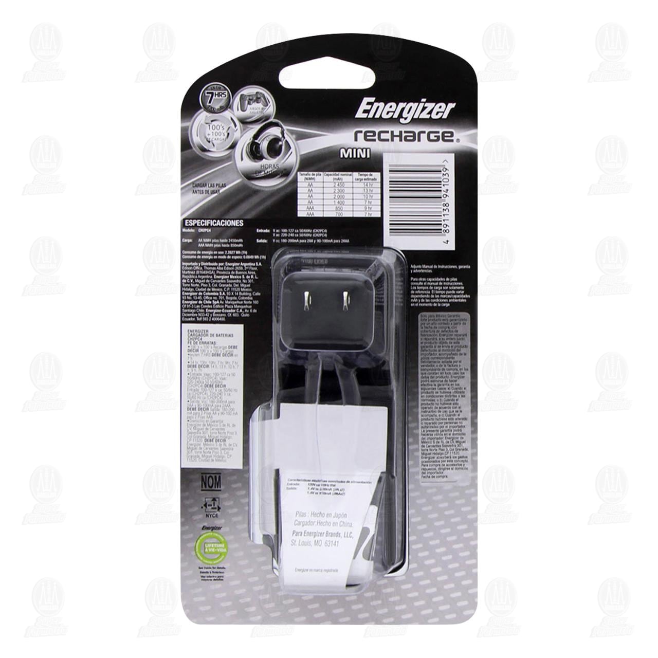 Cargador Mini Energizer para Pilas AA y AAA Ni-MH, 4 pzas.