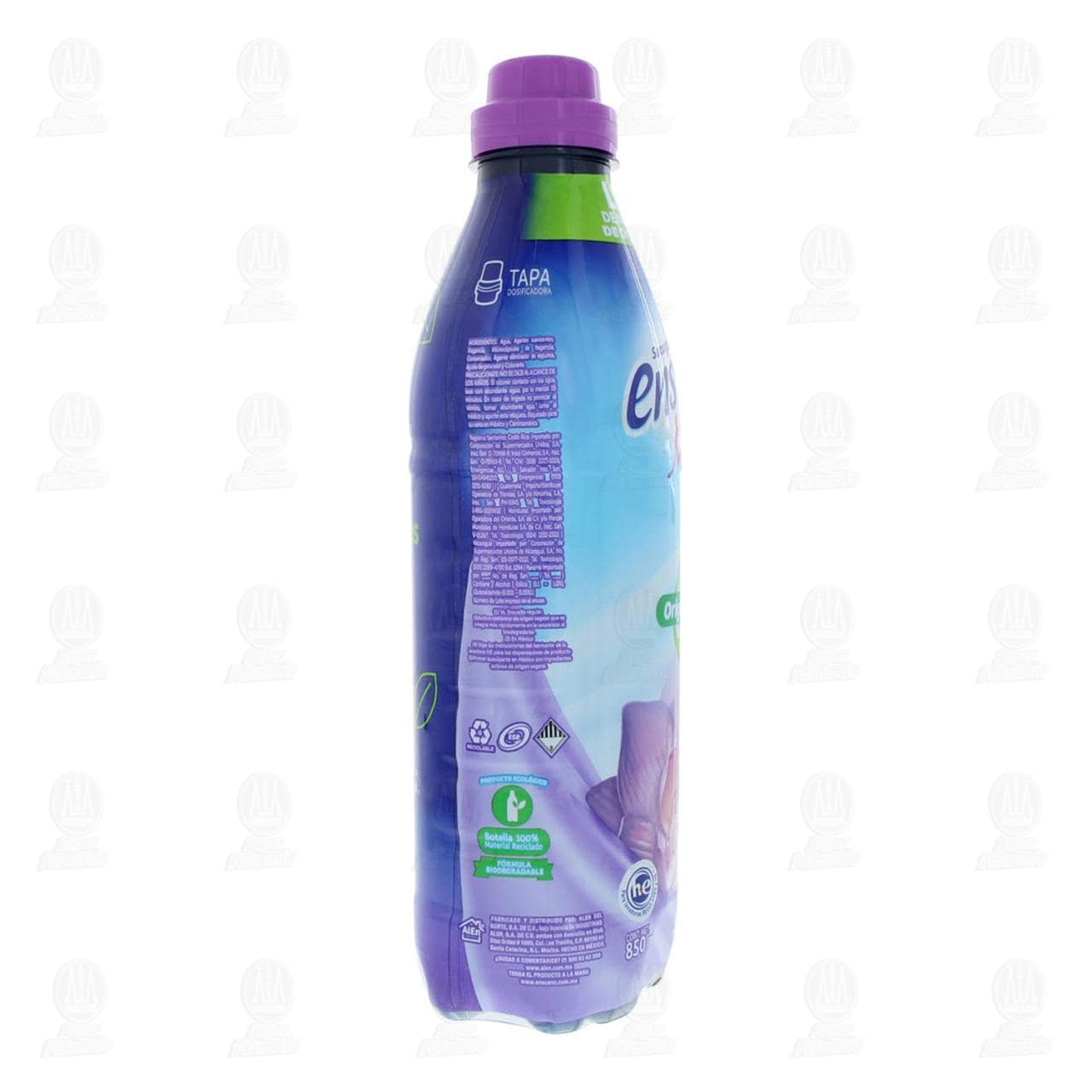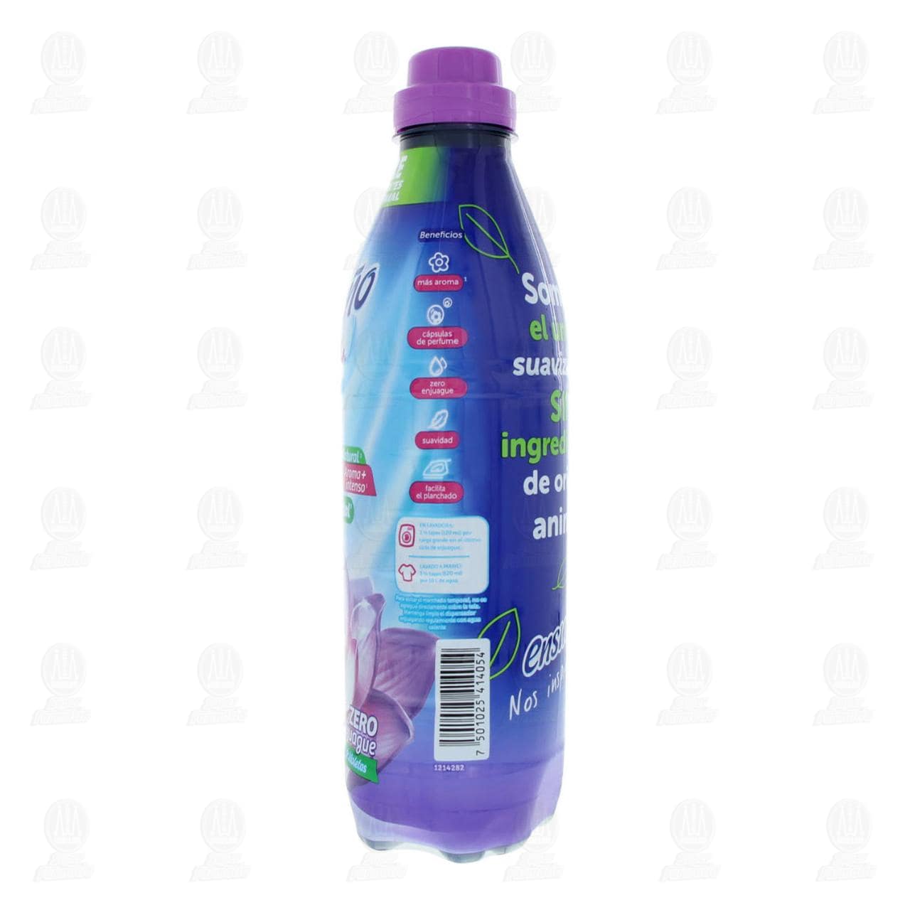 Suavizante para telas Ensueño Max cero enjuague con aroma rocío de violetas, de origen vegetal. Envase con 850 mililitros.