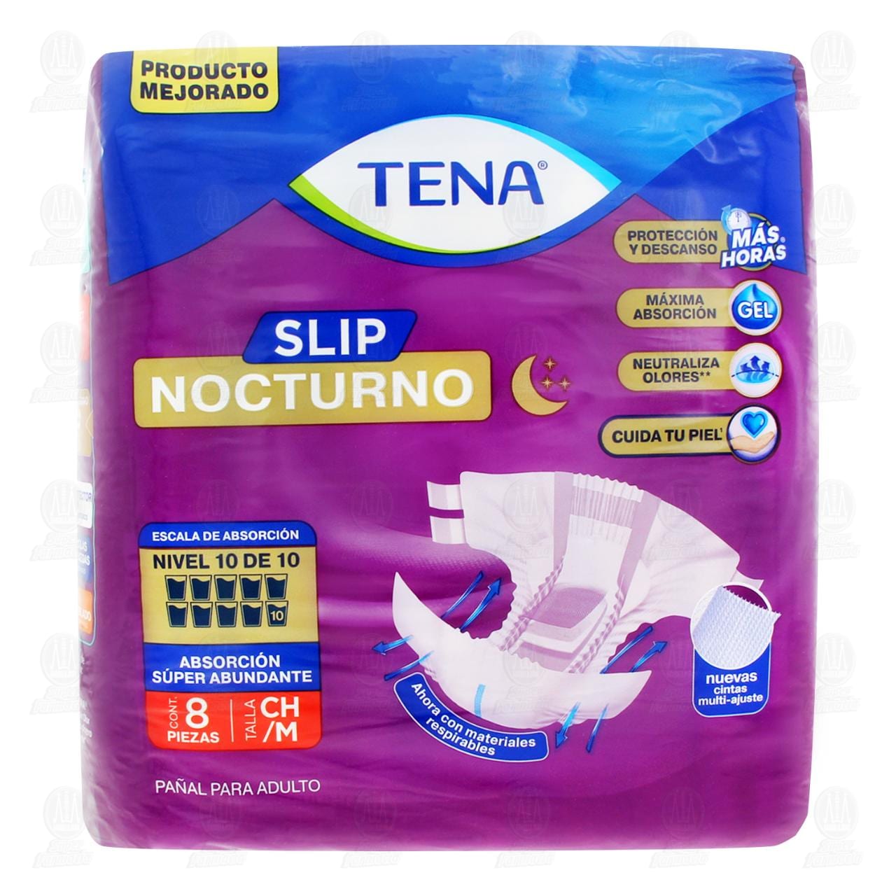 Protector Tena Slip Nocturno Talla Chica-Mediana Pañal para Adulto Absorción Súper Abundante. Paquete con 8 piezas.