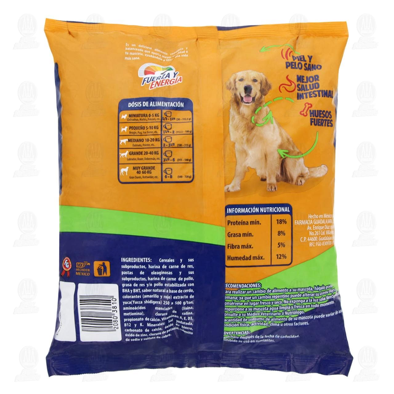 Consérvese en un lugar fresco y seco. No exponga a la luz solar directa y constante. Proporcione a su mascota agua limpia y fresca en todo momento. Consulte a su médico veterinario o nutriólogo. La cantidad de consumo de alimento de su mascota puede variar de acuerdo a su condición física, actividad, clima u otros factores. Prohibido su uso en rumiantes.Detalles del producto