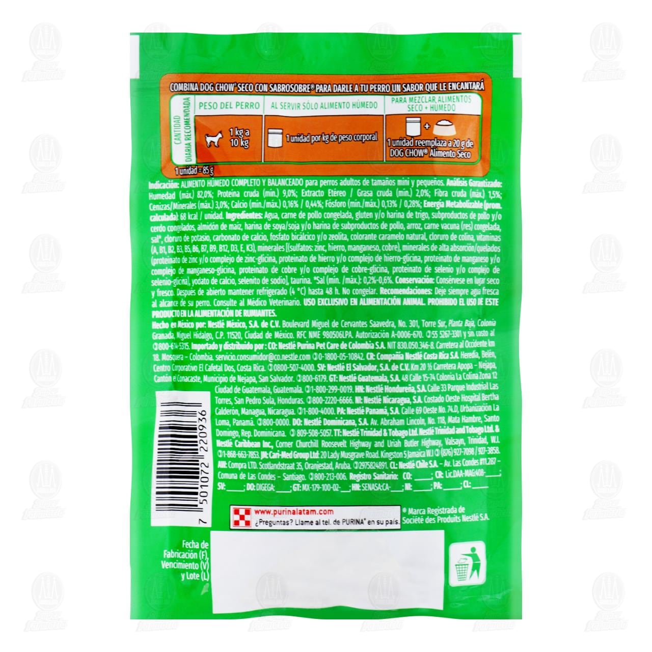 Purina Dog Chow Alimento Húmedo para Perros Adultos Razas Minis y Pequeñas, Sabor Carne con Extra life. Sobre con 100 gramos.