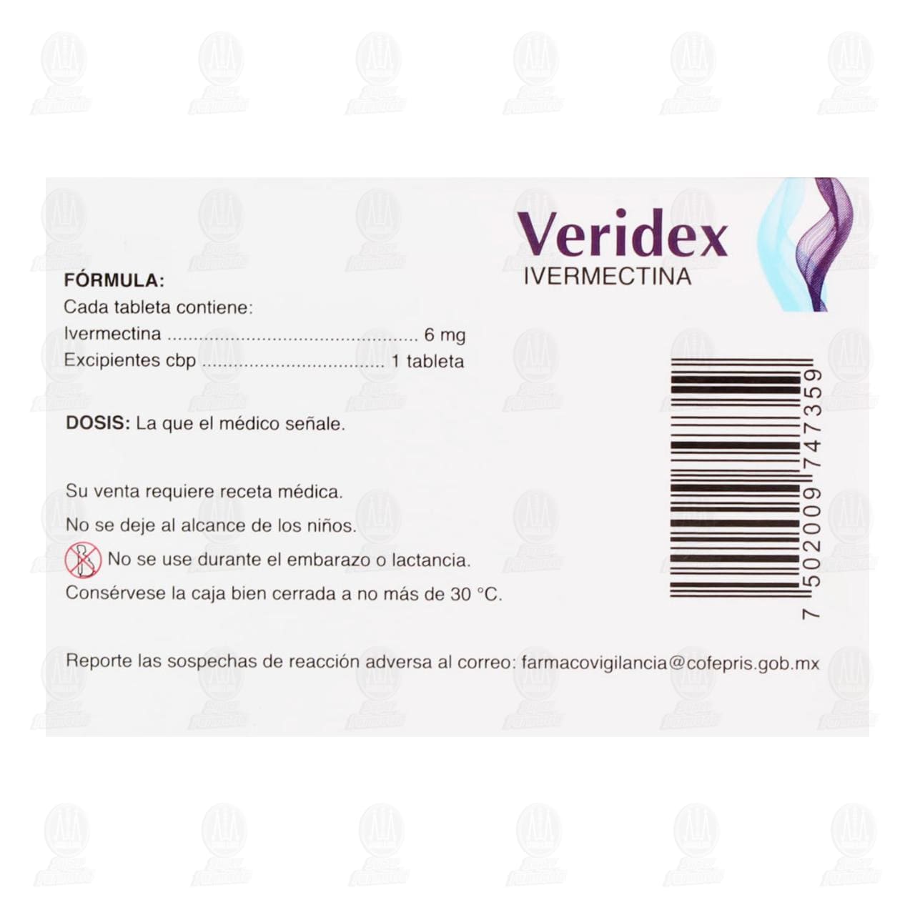 Veridex 6 mg, 2 Tabletas.