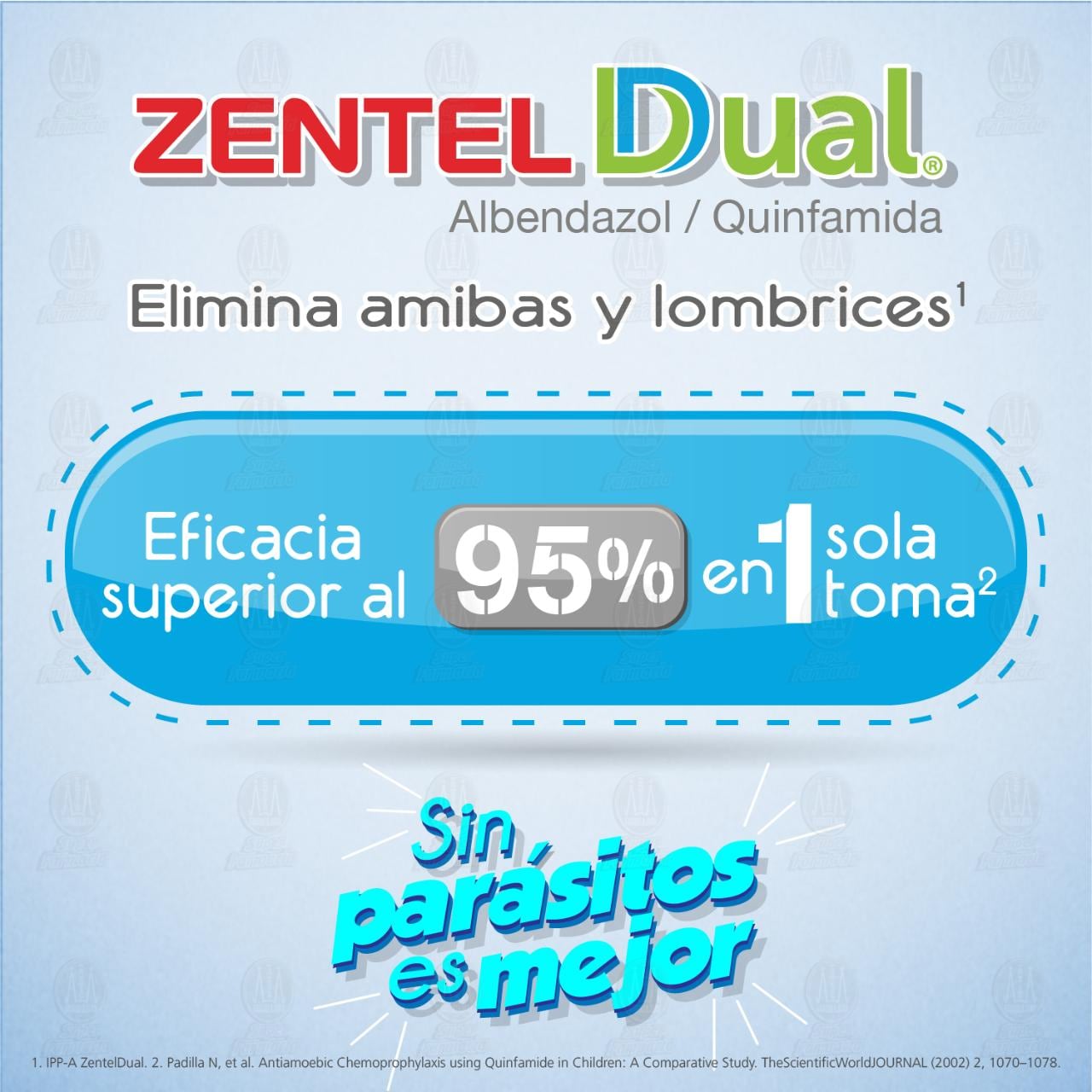 - Elimina amibas y lombrices, en una toma, en un solo día.