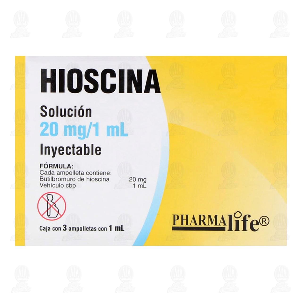 Hioscina 20mg/1ml Solución Inyectable. Contiene 3 Ampolletas con 1 mililitros Pharmalife.