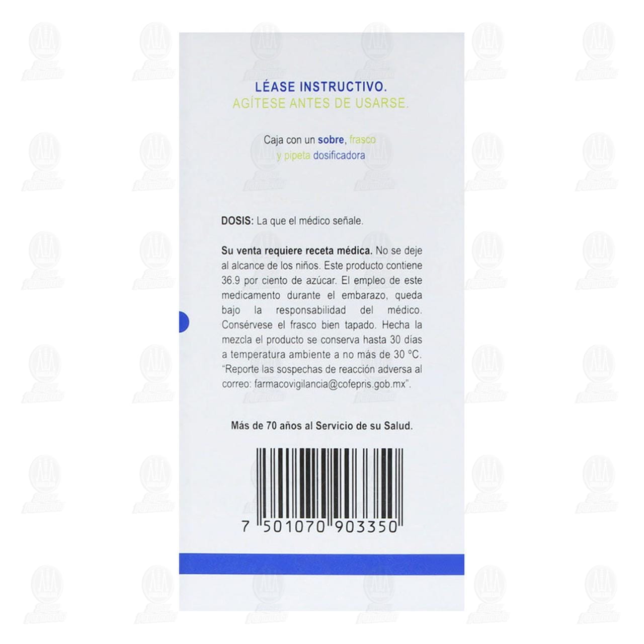 Caja de cartón con 1 sobre con 5 g, 1 frasco para 30 mL (2 g/100 mL) con diluyente, 1 pipeta dosificadora e instructivo de uso impreso.