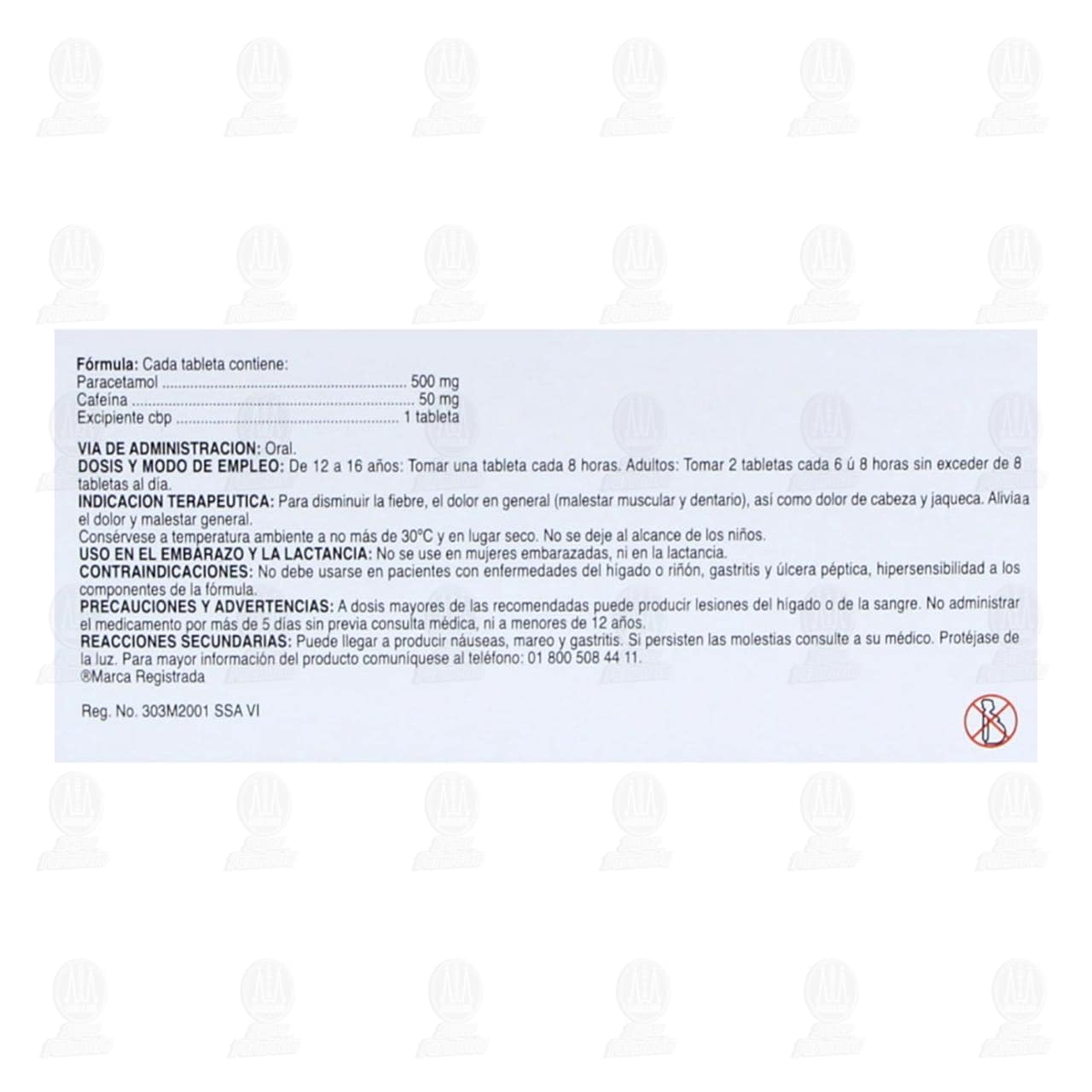 Paracetamol-Cafeína 500mg/50mg, 20 Tabletas Pharmalife.