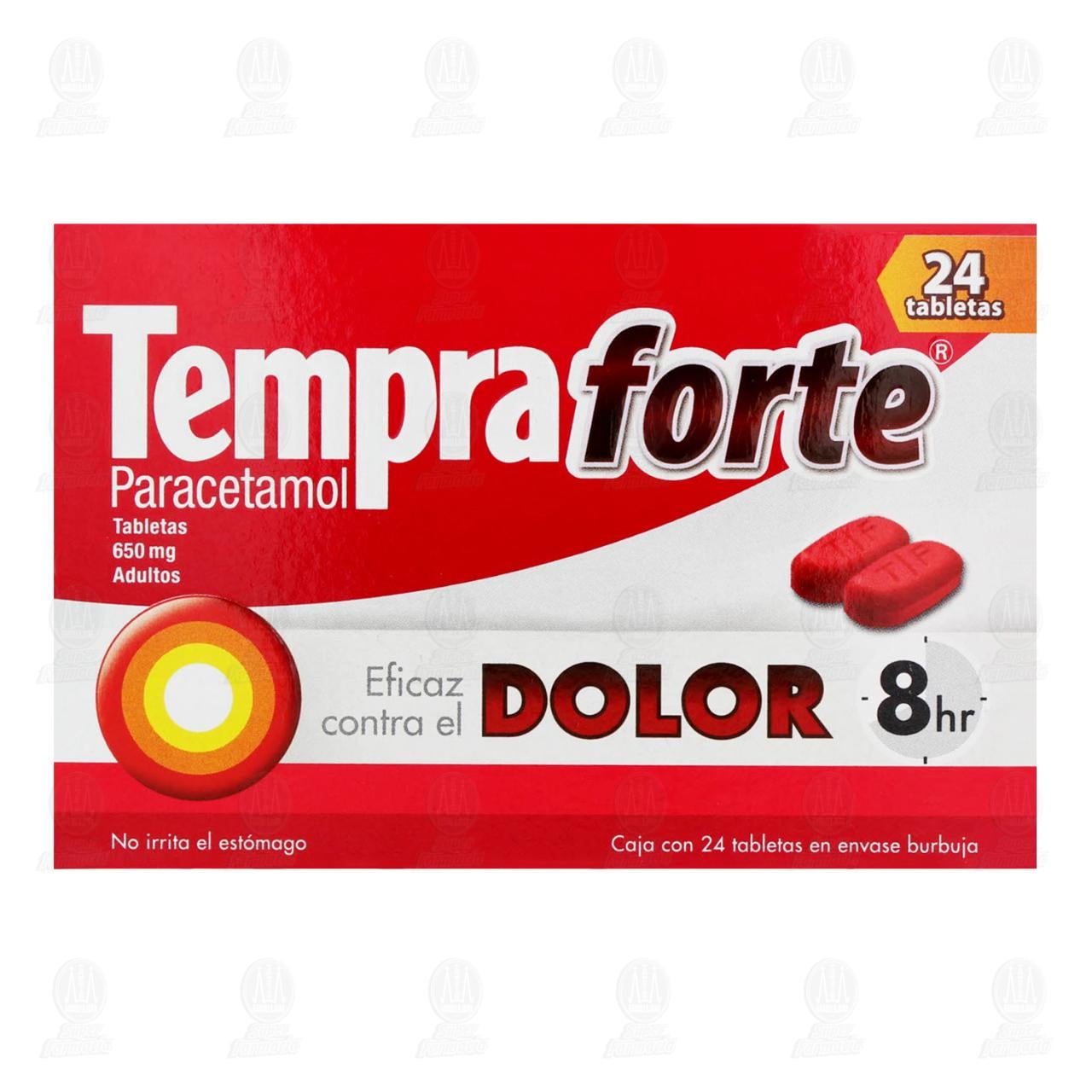 Tempra Forte con 24 tabletas es un analgésico para adultos, auxiliar en el alivio del dolor y la fiebre, así como, algunas molestias relacionadas con el catarro (Paracetamol)