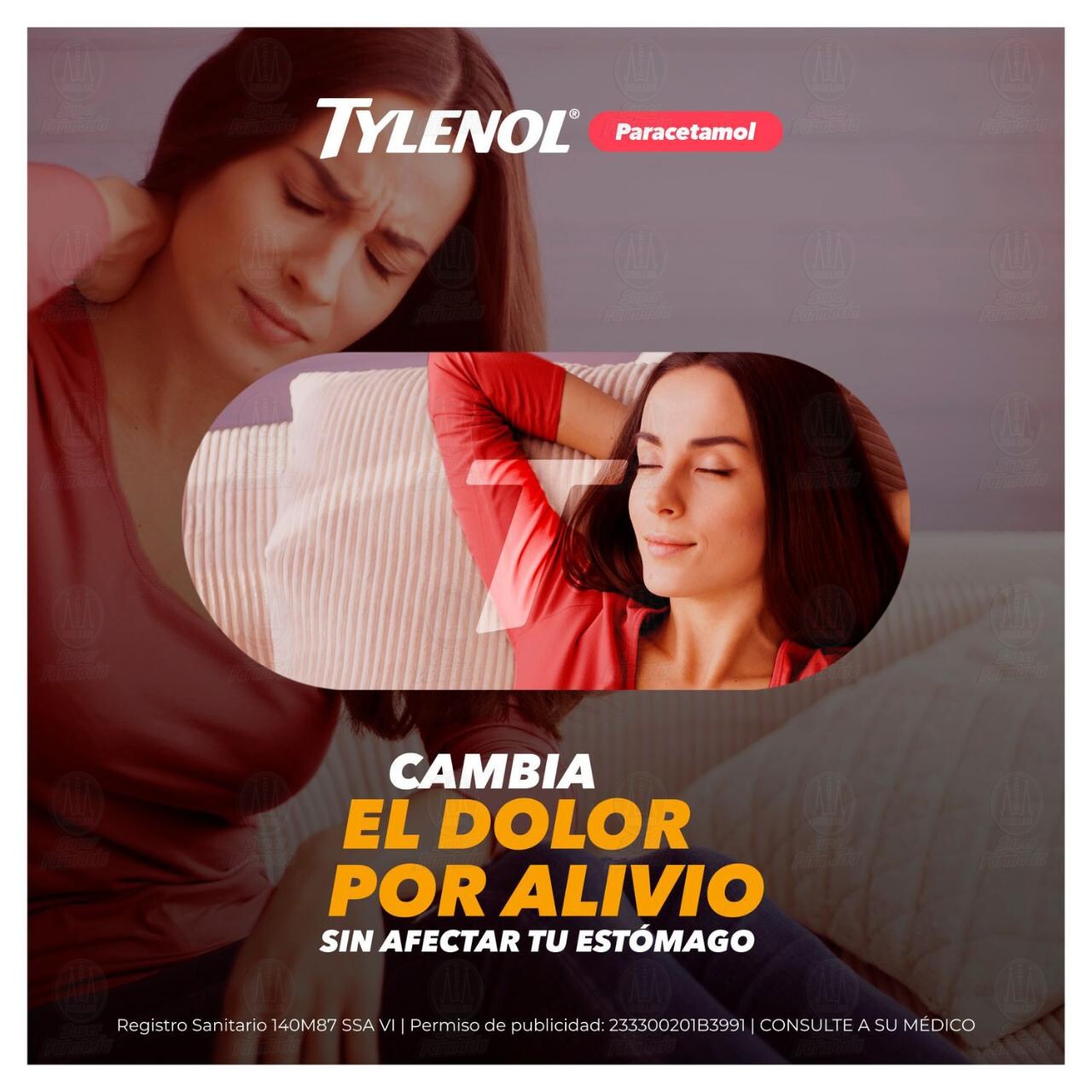 Tylenol auxiliar en diferentes tipos de dolor y fiebre. Auxiliar en el tratamiento de dolor de cabeza, muscular, dental, de espalda, menstrual, en articulaciones entre otros (Paracetamol)
