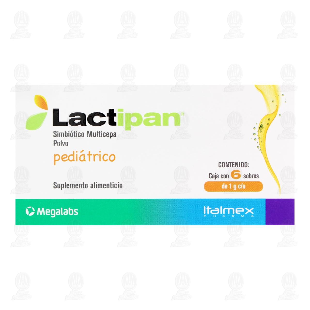 Lactipan Pediátrico Suplemento Alimenticio Simbiótico Multicepa. Caja con 6 Sobres de 1 gramo cada uno.