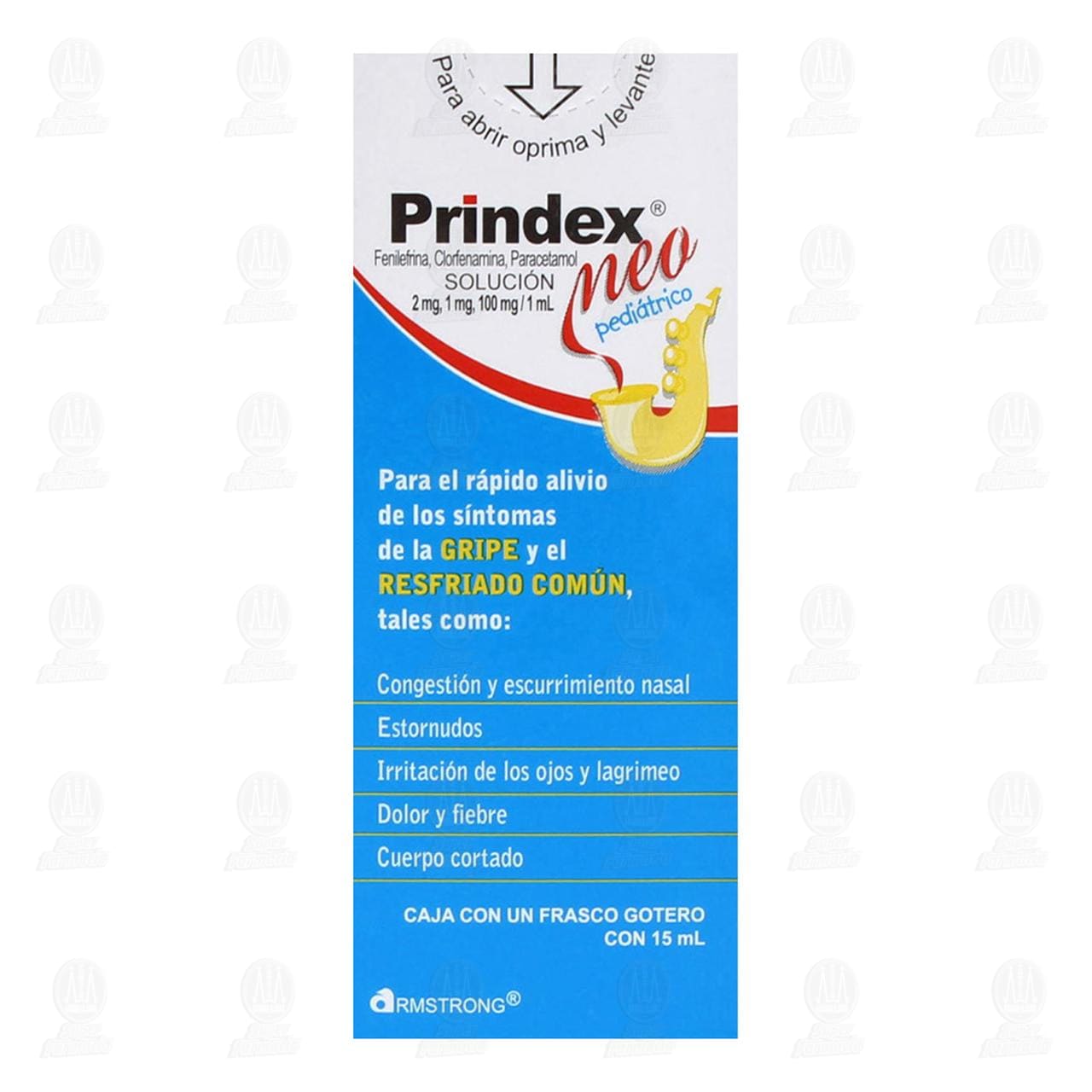 PRINDEX® NEO PEDIÁTRICO sirve para el alivio de los síntomas de la gripe y el resfriado común tales como: congestión y escurrimiento nasal, estornudos, irritación de los ojos y lagrimeo, dolor, fiebre, cuerpo cortado.