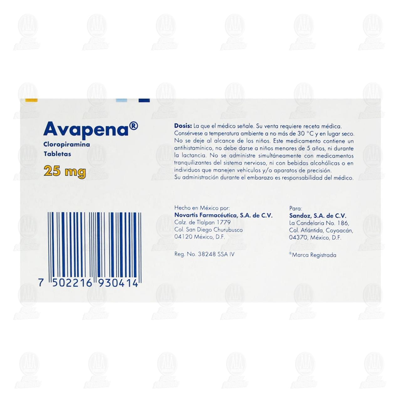 Avapena 25 mg, 20 Tabletas.