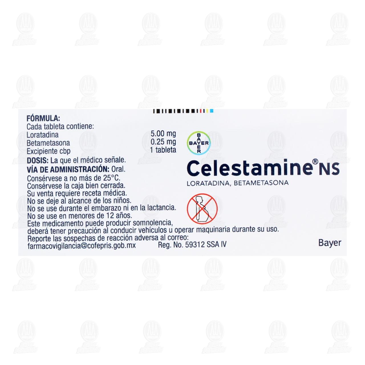 Celestamine NS 5.0mg/0.25mg, 10 Tabletas.
