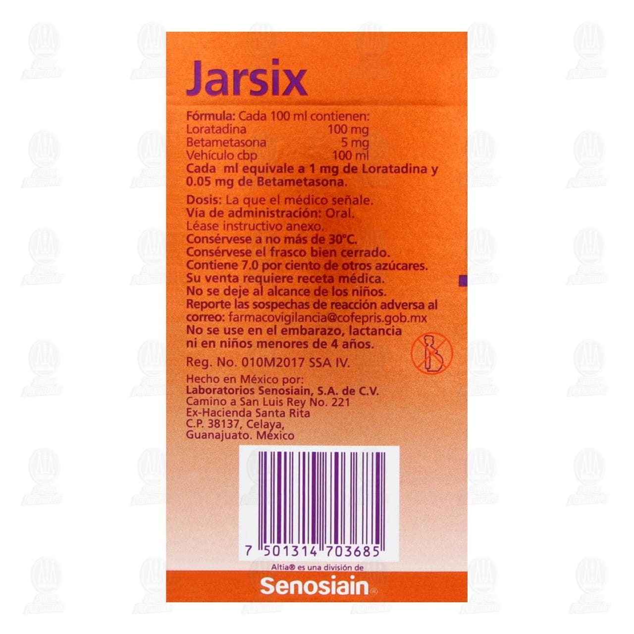 Jarsix Solución 100mg/5mg/100ml, Frasco con 60 mililitros (Loratadina, Betametasona)