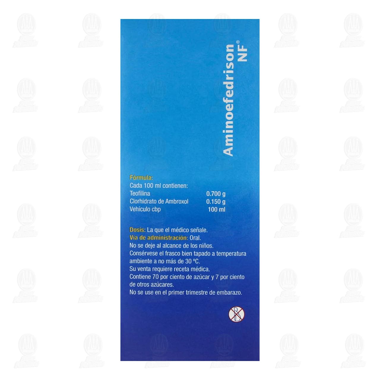 INDICACIONES TERAPÉUTICAS: AMINOEFEDRISON NF® es un broncodilatador y mucolítico con acción expectorante, que puede ser empleado en el tratamiento de padecimientos o infecciones de las vías respiratorias donde exista broncoespasmo o hiperreactividad bronquial y dificultad para expectorar; en procesos obstructivos de las vías respiratorias inferiores como: bronquitis aguda, bronquitis crónica, bronquitis asmatiforme, enfisema pulmonar, bronquiectasias, asma bronquial en su forma aguda o crónica, y crisis asmáticas.
