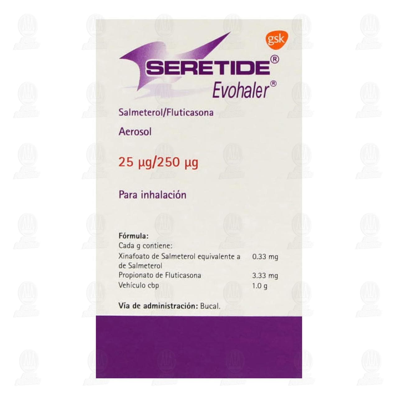 PRECAUCIONES GENERALES: SERETIDE® EVOHALER® no debe utilizarse para el alivio de los síntomas agudos, para el cual se requiere un broncodilatador de acción rápida y de corta duración (por ejemplo, salbutamol). Se les debe recomendar a los pacientes que siempre tengan a la mano su medicación de rescate.