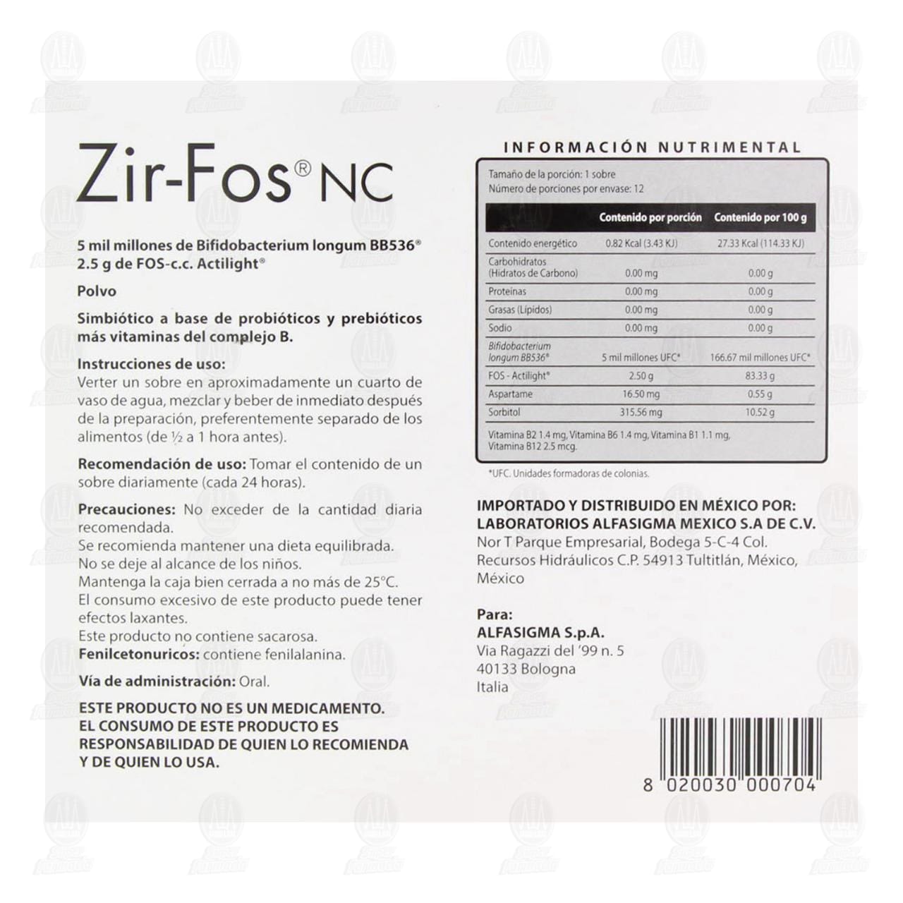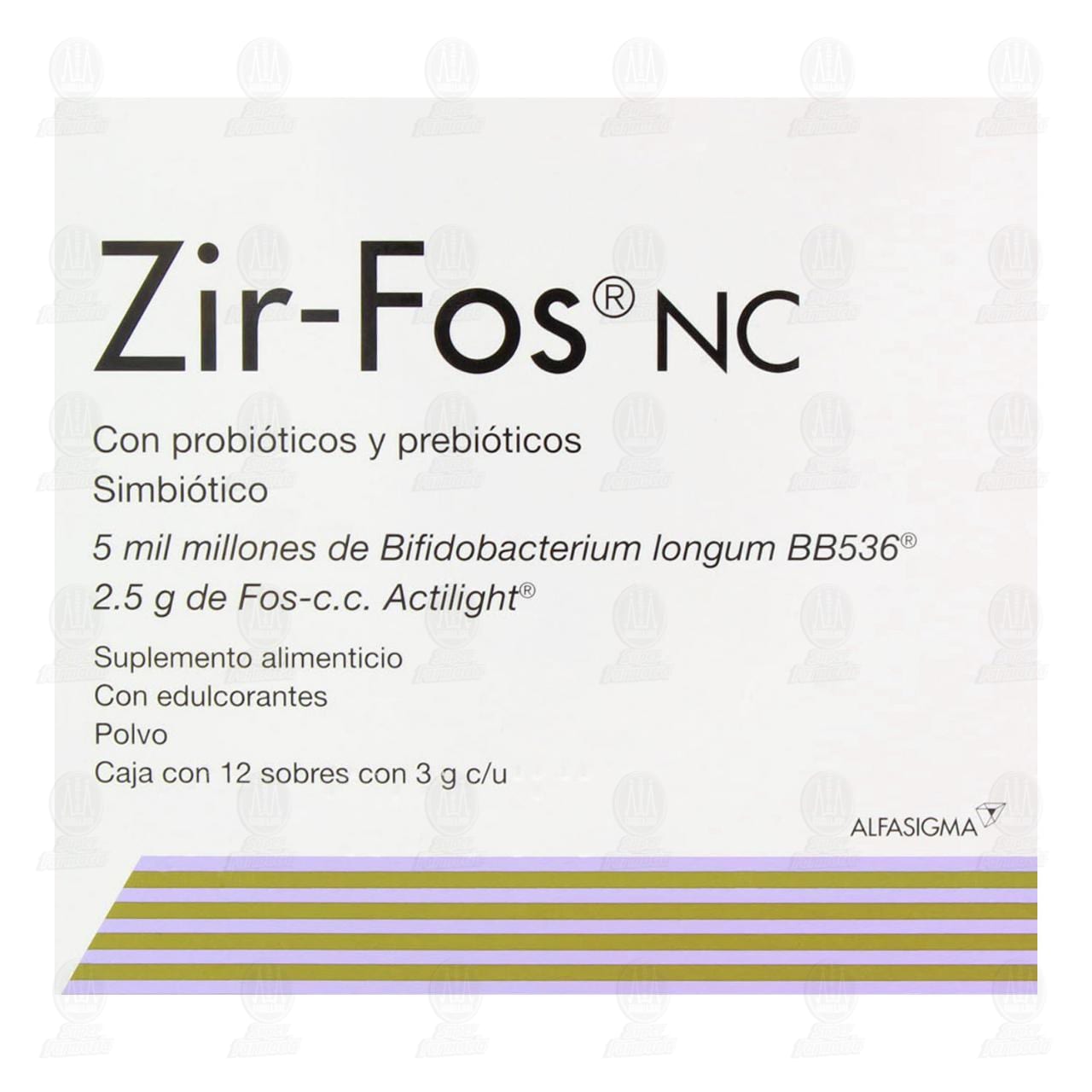 Zir-Fos NC, 12 Sobres de 3 gramos cada uno (Probiótico, Prebótico, Simbiótio, Bifidobacterium longun BB536)