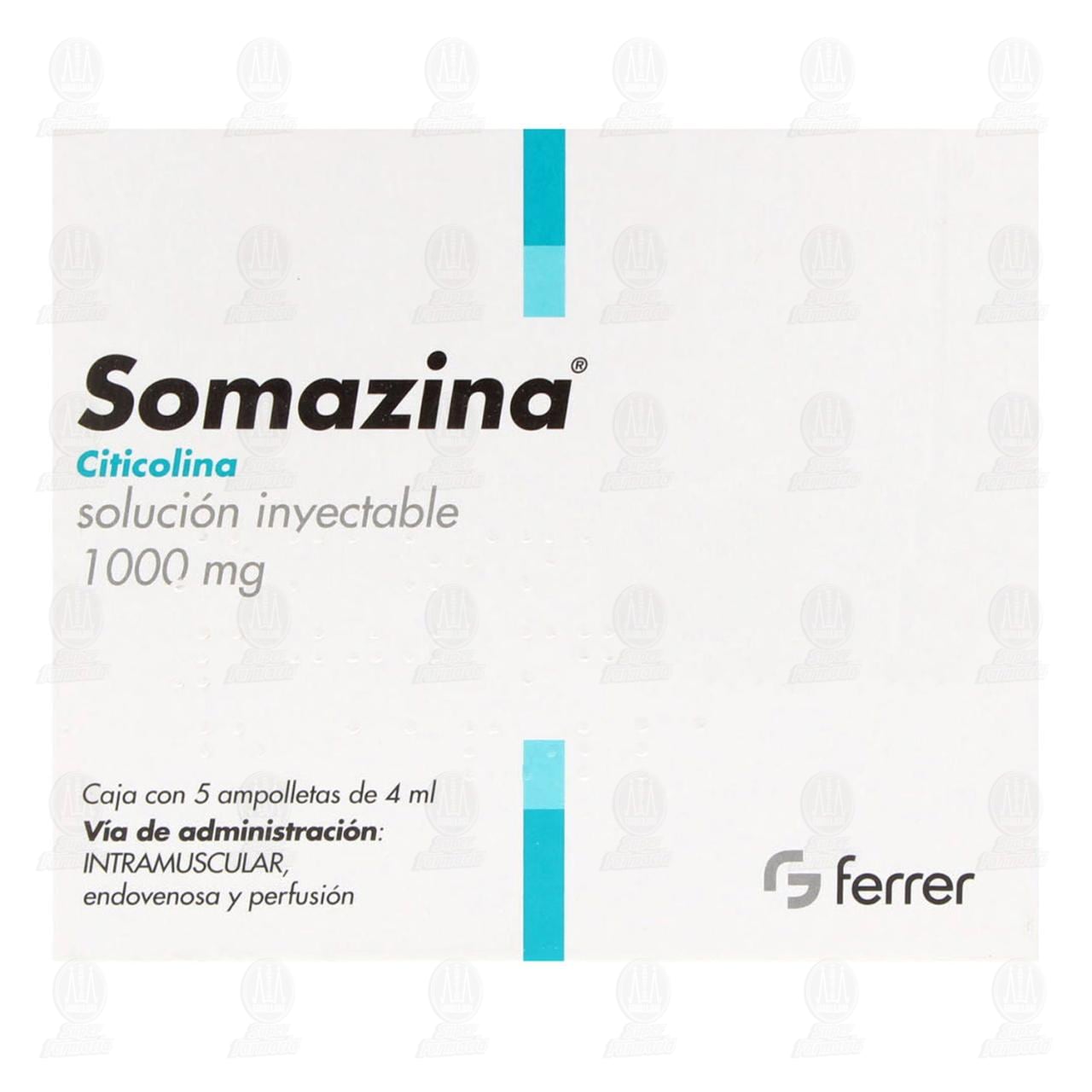 Somazina 1000 miligramos Solución Inyectable, 5 Ampolletas de 4 mililitros cada una (Citicolina)
