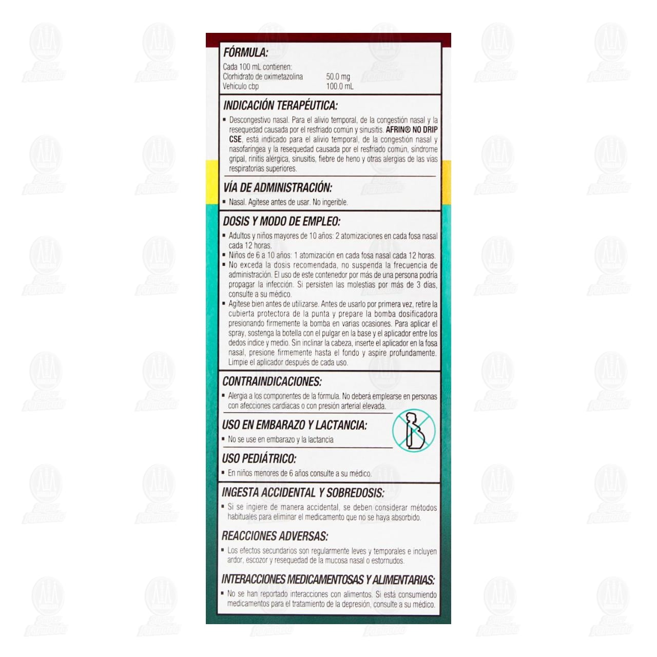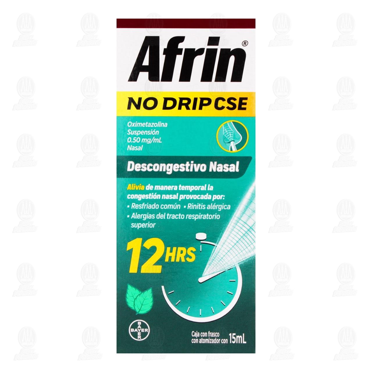 Afrin No Drip CSE Suspensión 0.50mg/ml Nasal, descongestivo nasal. Frasco con atomizador con 15 mililitros (Oximetazolina)