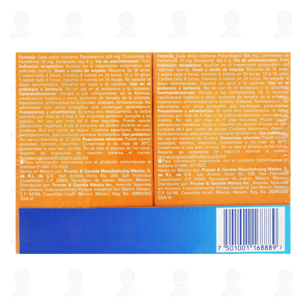 Vía de administración: oral. Modo de empleo: disuelva en agua o té caliente. Dosis: mayores de 18 años: 1 sobre cada 4 horas, máximo 6 sobres en 24 horas. 12 a 18 años: 1 sobre cada 6 horas, máximo 4 sobres en 24 horas. No exceda la dosis recomendada.Detalles del producto