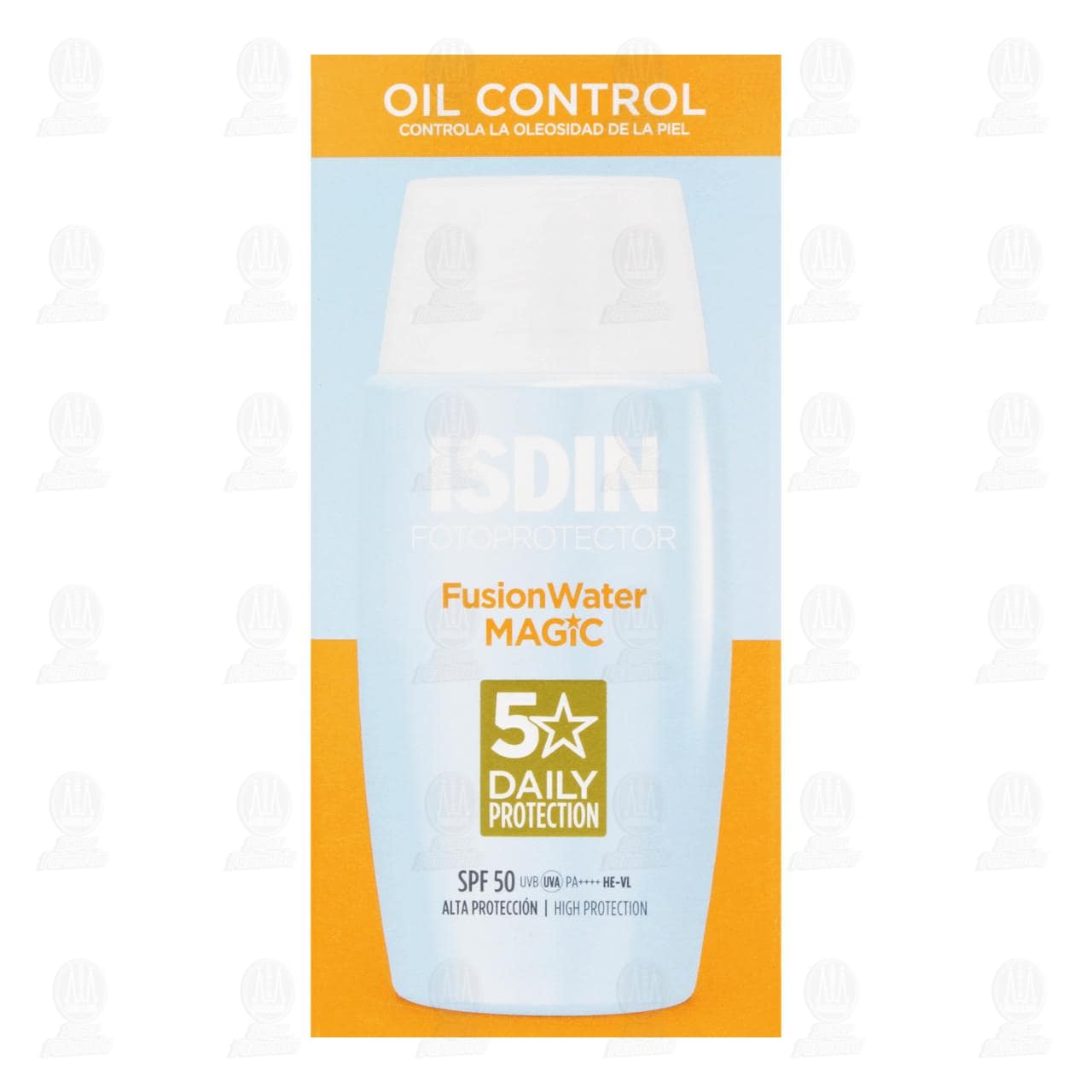 Isdin Fotoprotector Fusion Water Magic SPF50, Protege tu Piel con el Fotoprotector Facial Ultraligero de Absorción Inmediata y Uso Diario que se Funde con la Piel y Proporciona una Alta Protección. Contiene 50 mililitros.