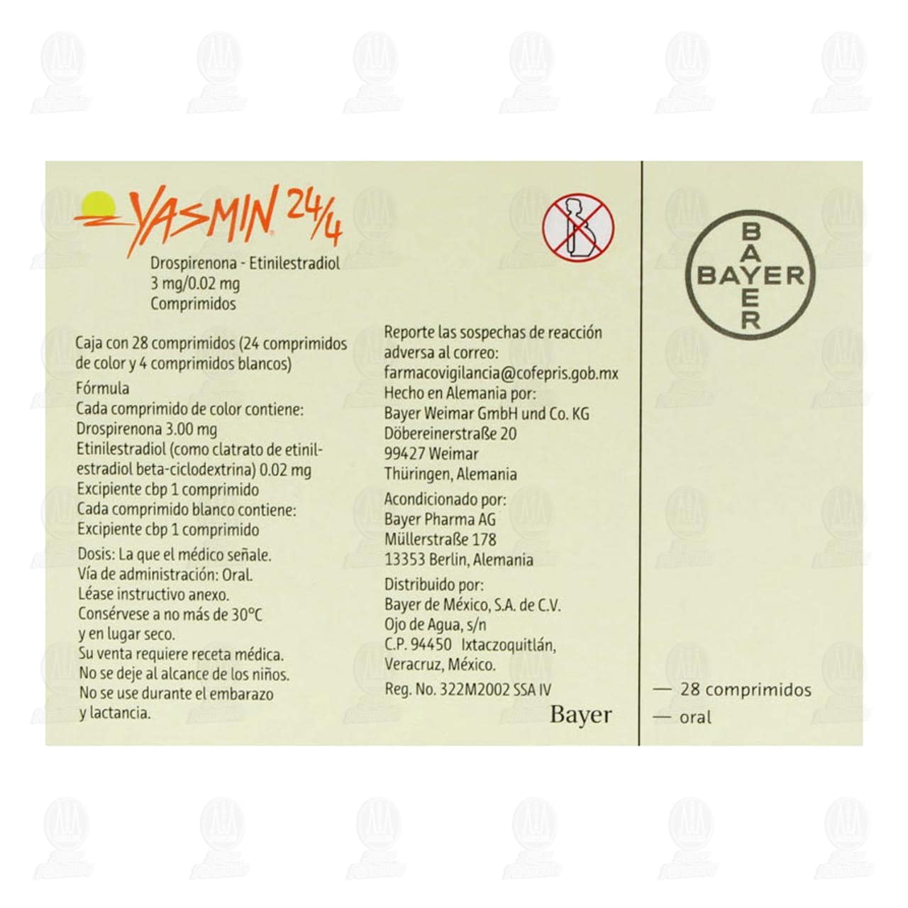 Yasmín 24/4 3mg/0.02mg, 28 Comprimidos (Drospirenona, Etinilestradiol)
