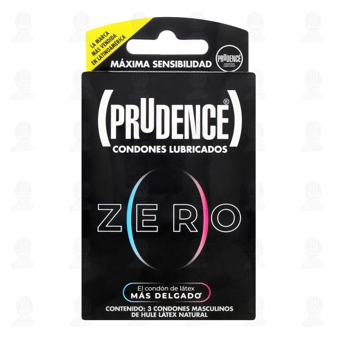 Condones masculinos Lubricados Prudence Zero de hule látex natural más delgado. Contiene 3 condones.