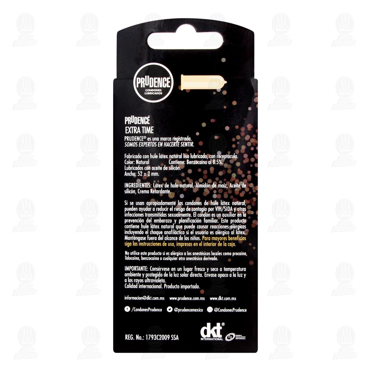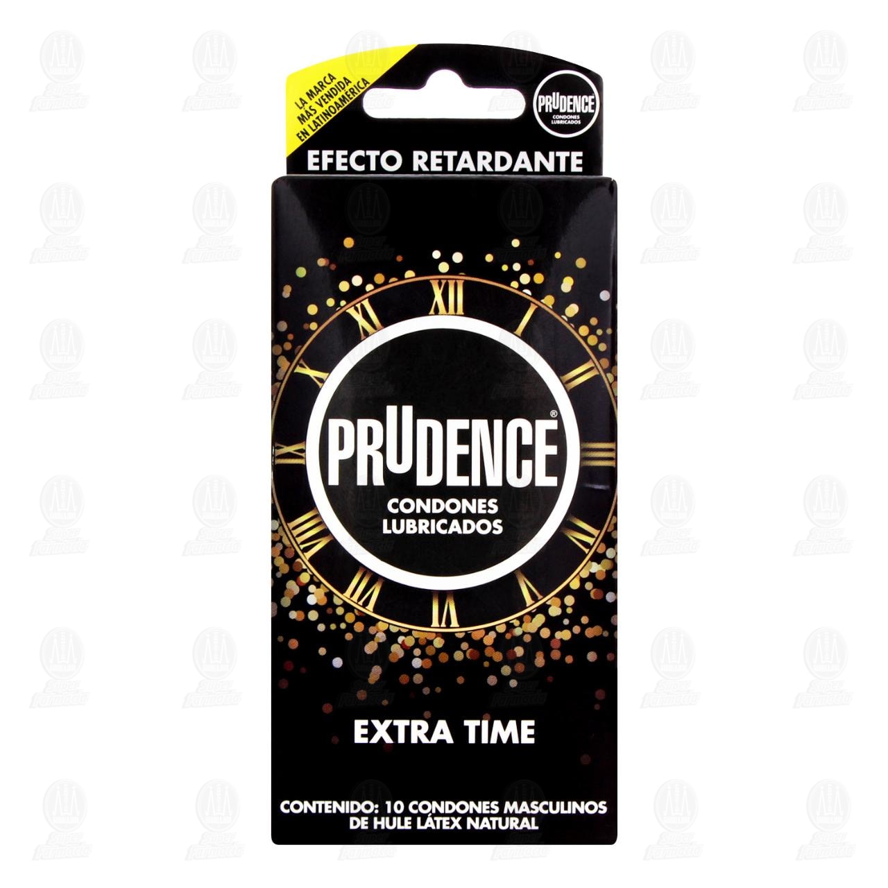 Prudence Condones Lubricados Extra Time efecto retardante de hule látex natural. Contiene 10 Condones.