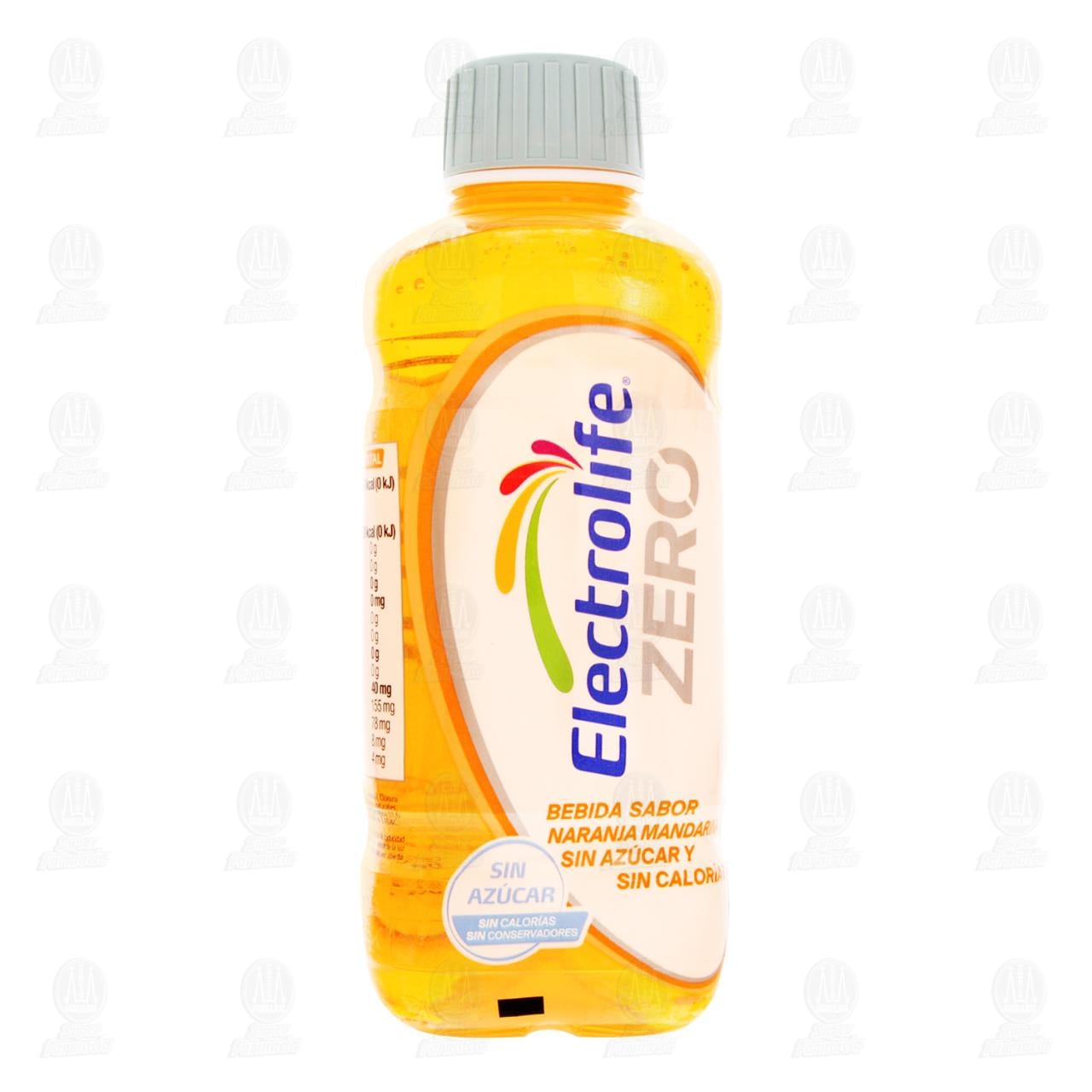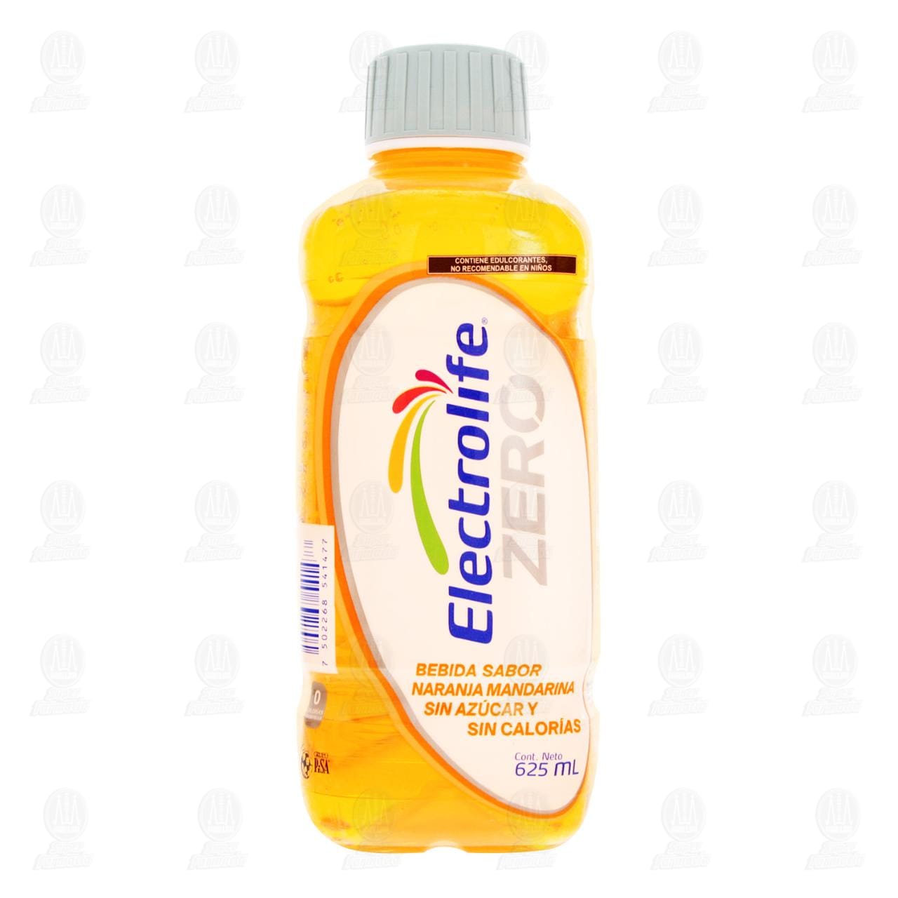 Bebida hidratante Electrolife Zero, aporta iones esenciales para ayudar a reponer el agua y electrolitos en tu cuerpo, 0 calorías y 0 azúcar, sin conservadores, sabor naranja-mandarina. Envase con 625 mililitros.