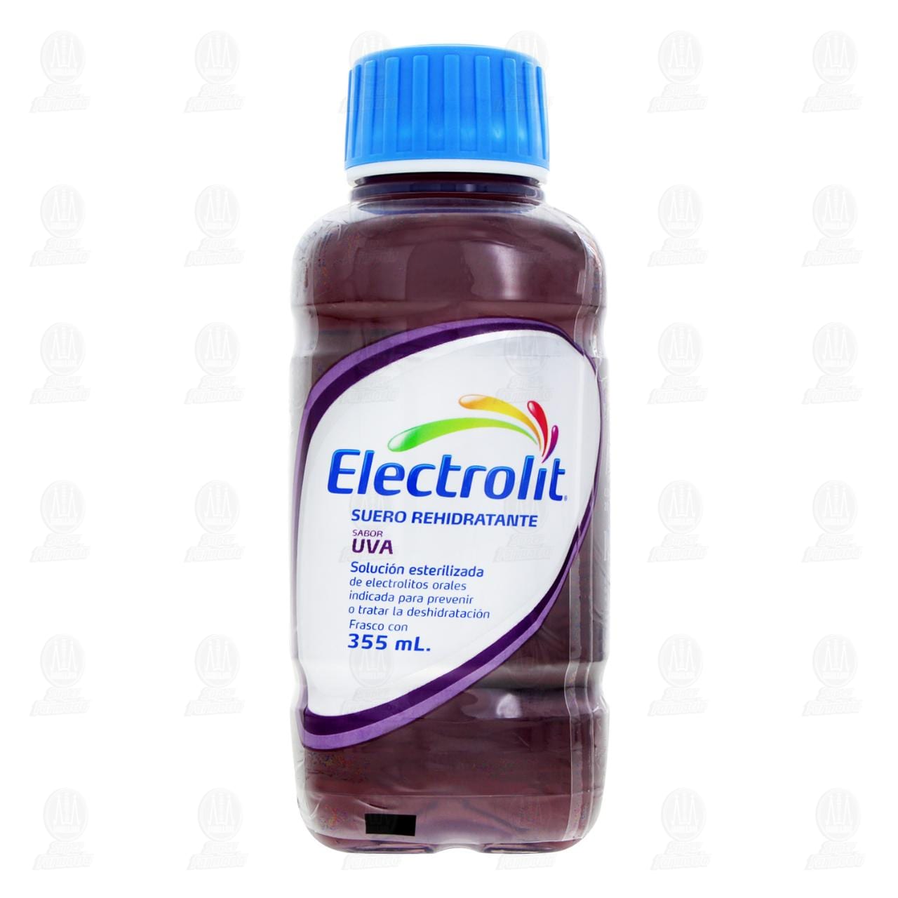 Suero Rehidratante Electrolit sabor uva solución esterilizada de electrolitos orales indicada para prevenir o tratar la deshidratación. Envase con 355 mililitros.
