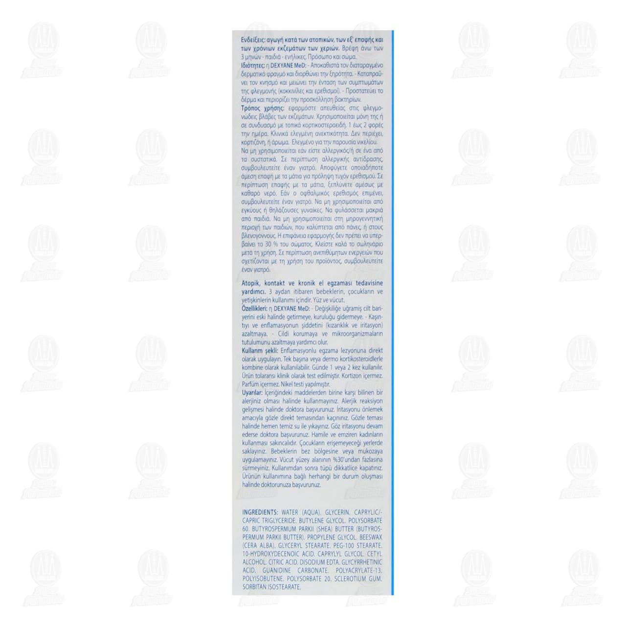 Dexyane MeD restaura la barrera cutánea alterada y corrige la sequedad, calma el picor y disminuye la intensidad de los signos de inflamación (enrojecimiento e irritaciones), protege la piel y limita la adherencia bacteriana.