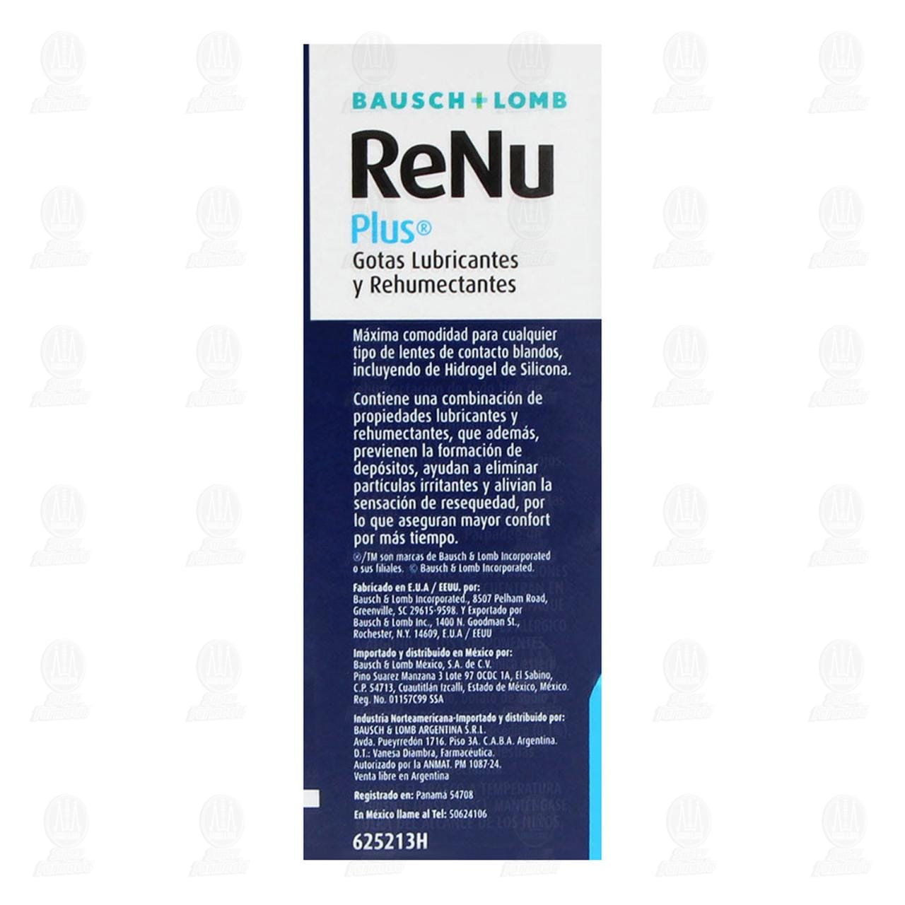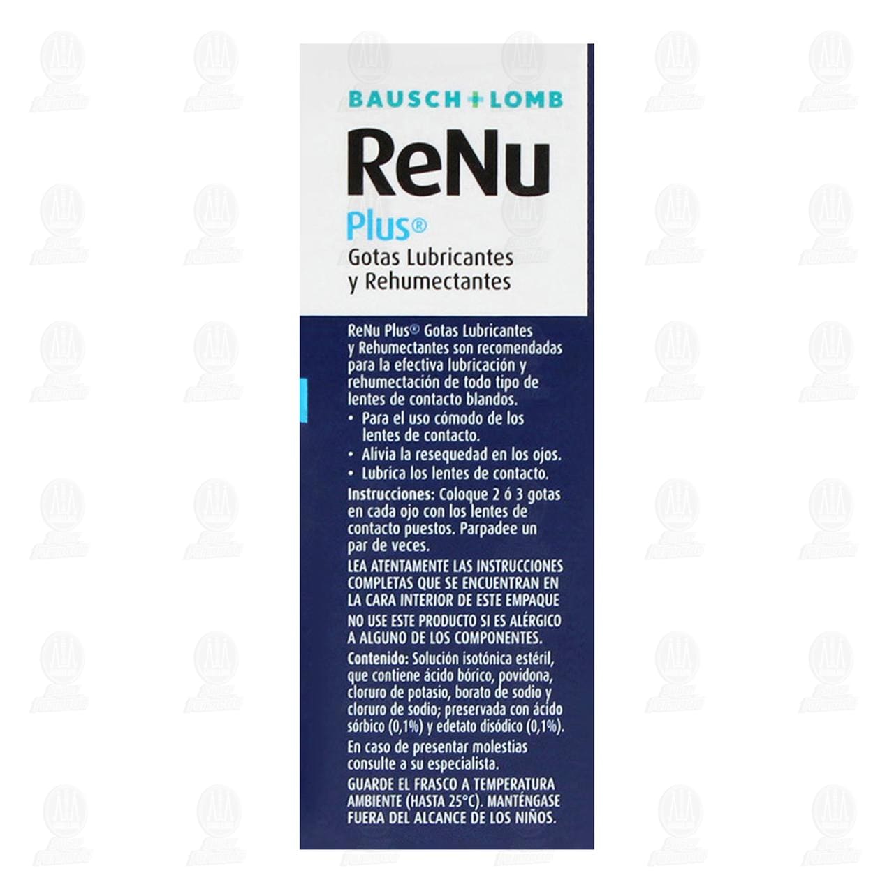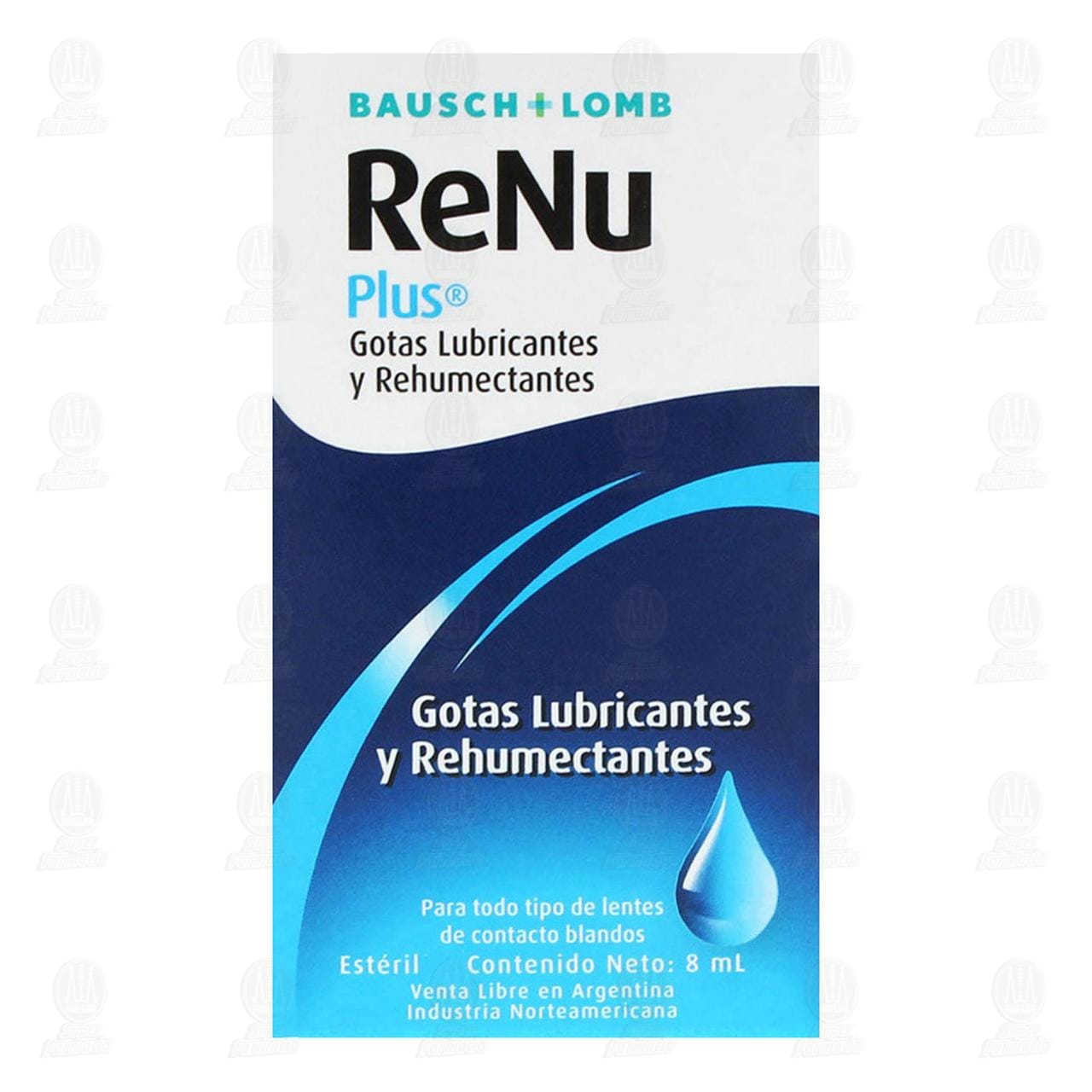 - Renu Plus gotas lubricantes y rehumectantes son recomendadas para la efectiva lubricación y rehumectación de todo tipo de lentes de contacto blandos. Para el uso cómodo de los lentes de contacto. Alivia la resequedad en los ojos. Lubrica los lentes de contacto.