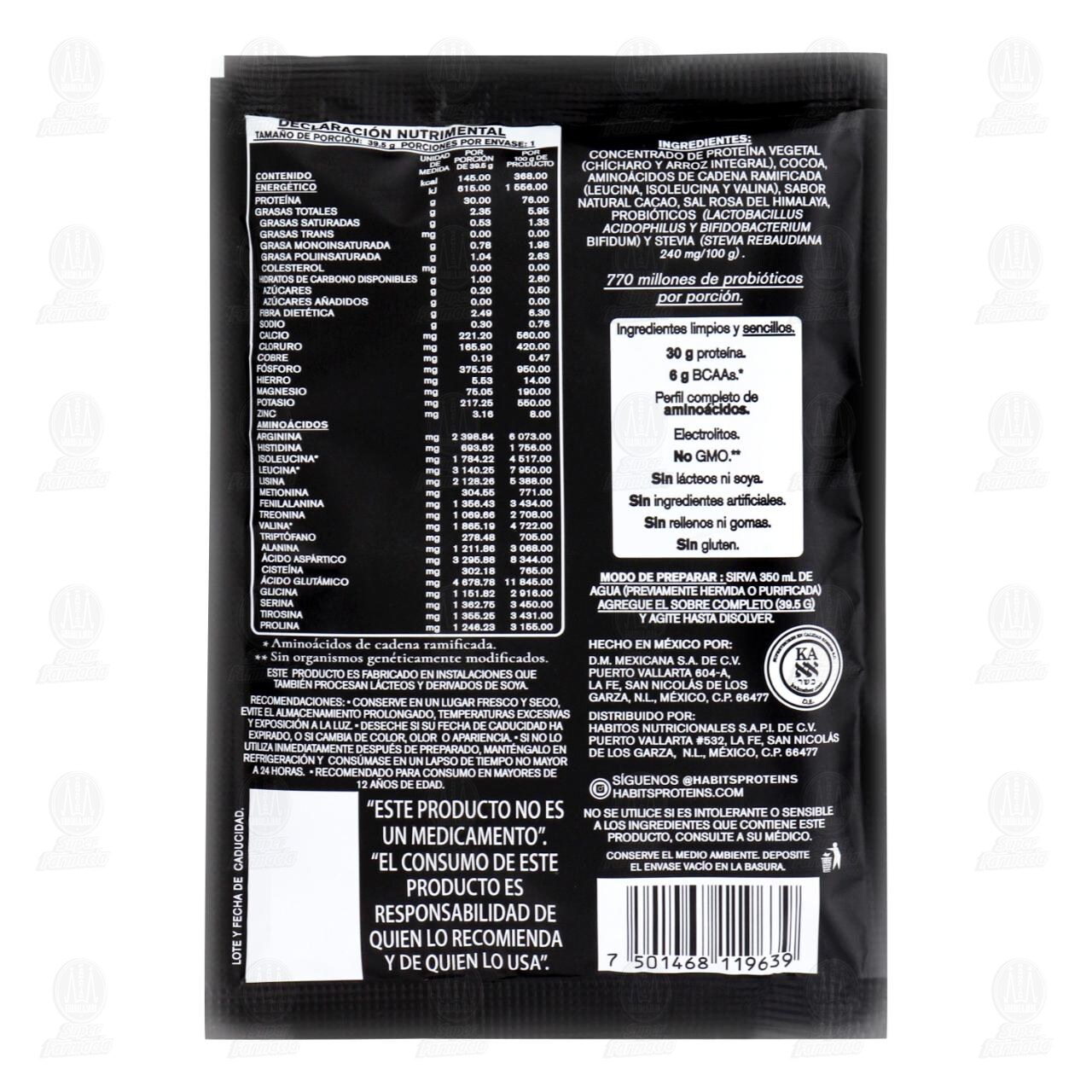 Habits High Performance en polvo a base de proteína vegetal sabor cacao, de alto rendimiento hecha con ingredientes limpios y sencillos. Contiene 39.5 gramos.