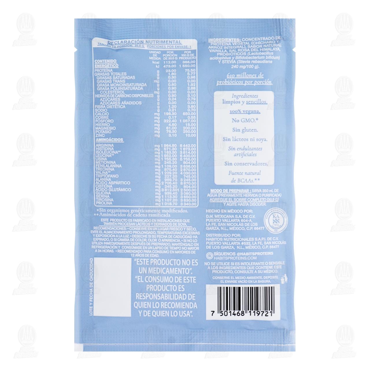 Habits Probiotic Vanilla Suplemento alimenticio sabor vainilla, hecha con ingredientes limpios y sencillos. Contiene 30.5 gramos.