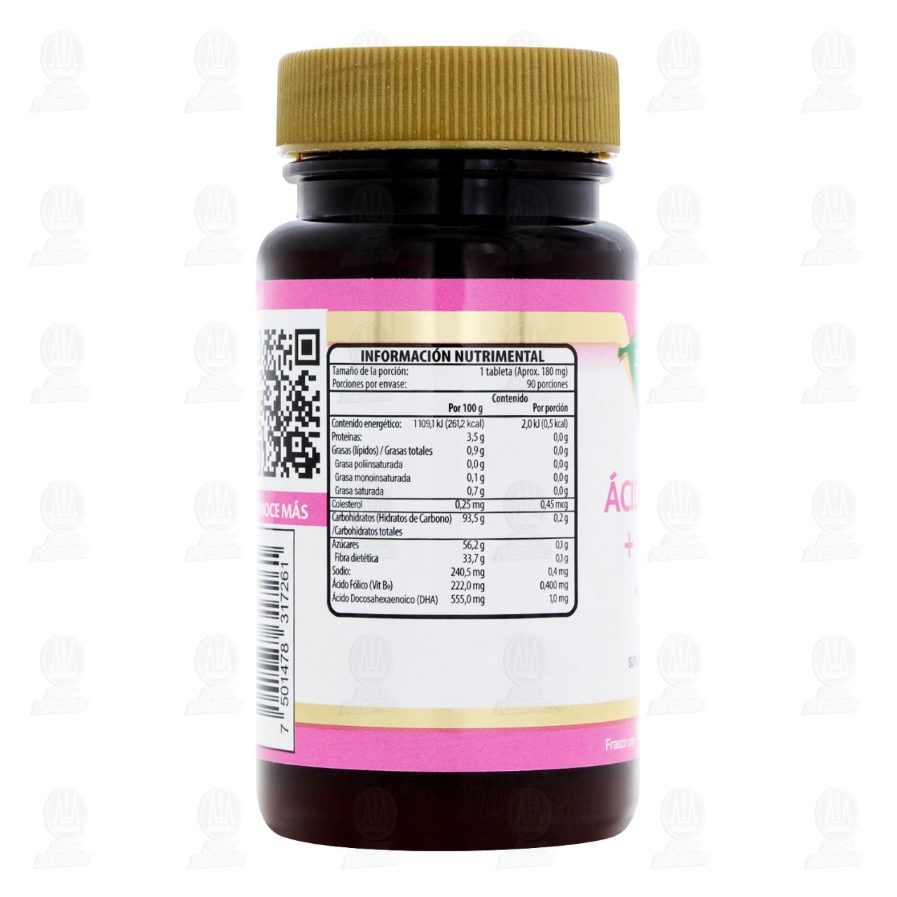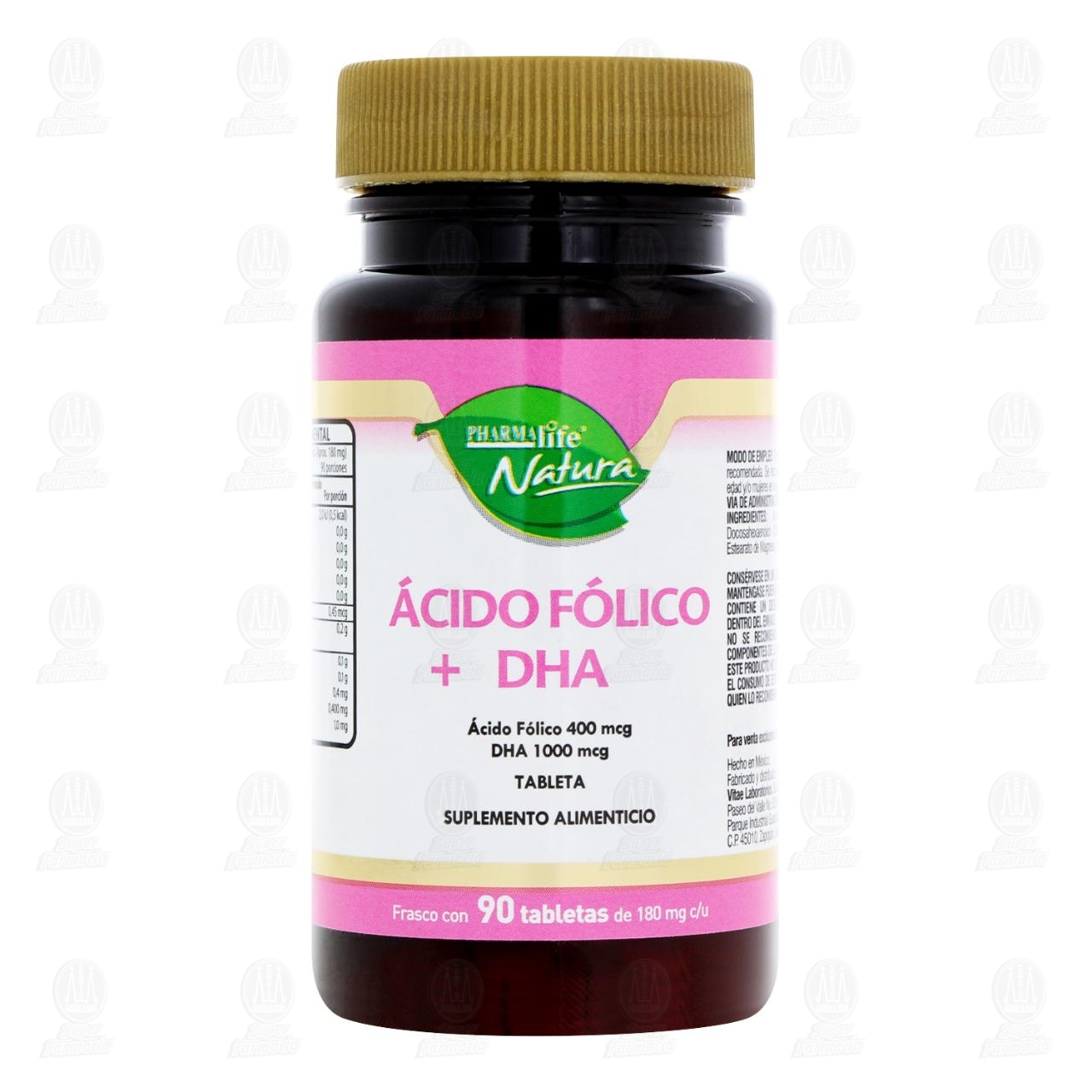 Ácido Fólico + DHA 400mcg/1000mg, 90 Tabletas de 180 mg c/u Pharmalife Natura.
