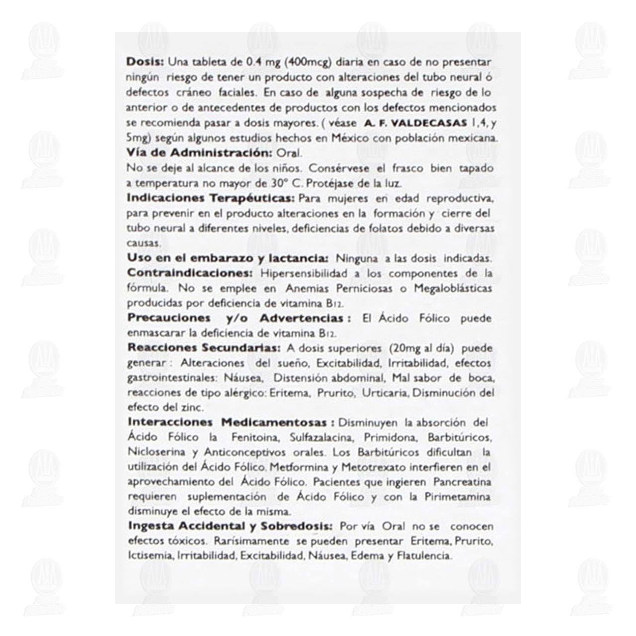 Frasco con 90 tabletas con 4.0 mg de ácido fólico cada una.