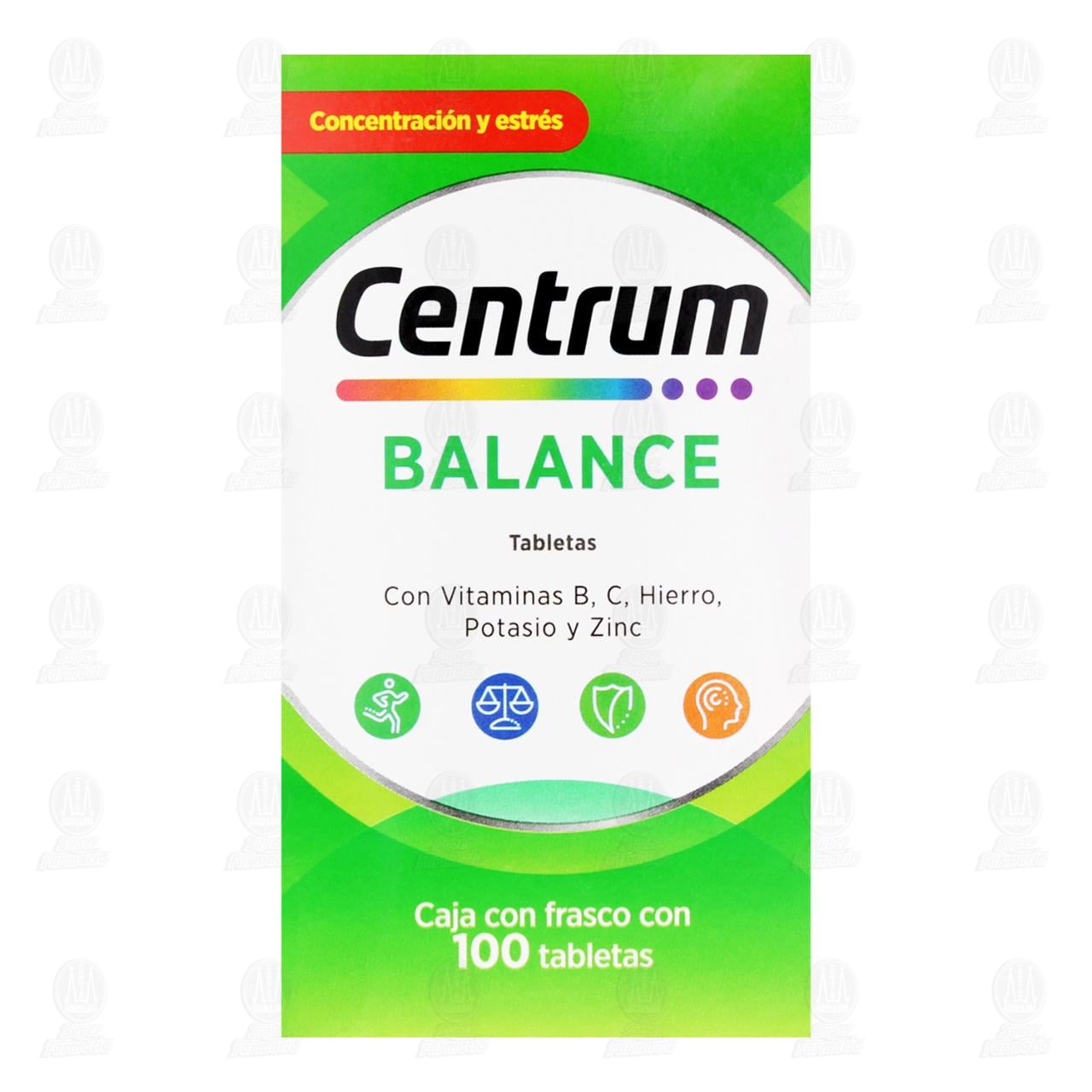 Centrum Balance concentración y estrés, 100 Tabletas (Vitaminas B, C, Hierro, Potasio, Zinc)