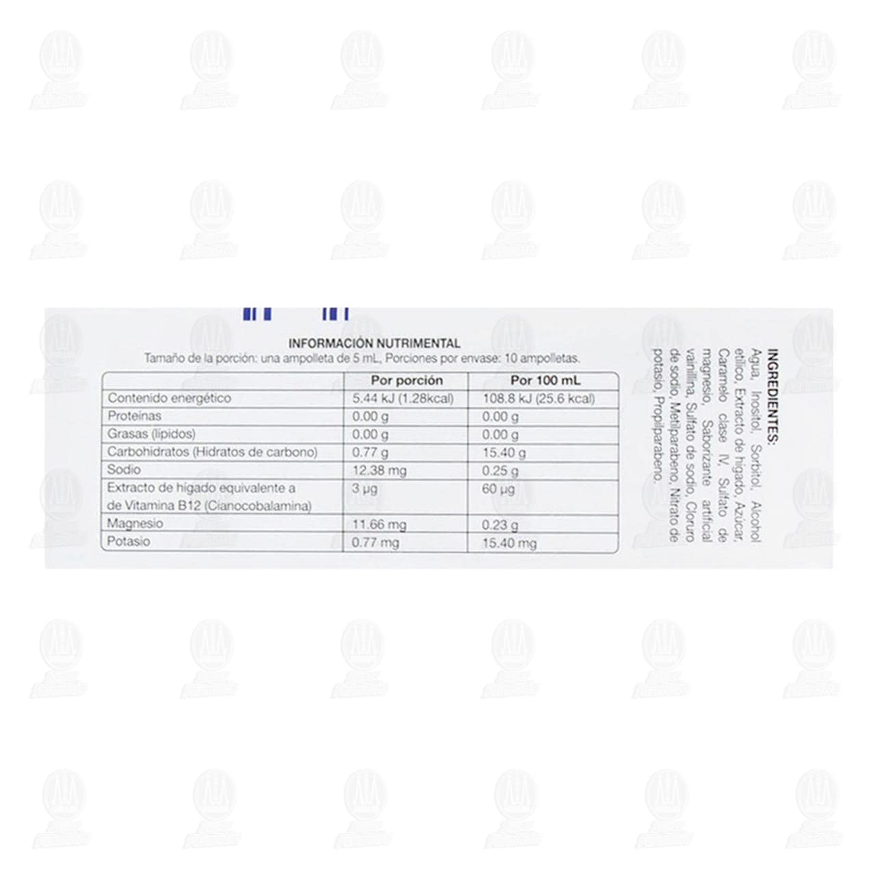 Cholal Modificado Solución. Contiene 10 Ampolletas de 5 mililitros cada una (Vitamina B12, Minerales)
