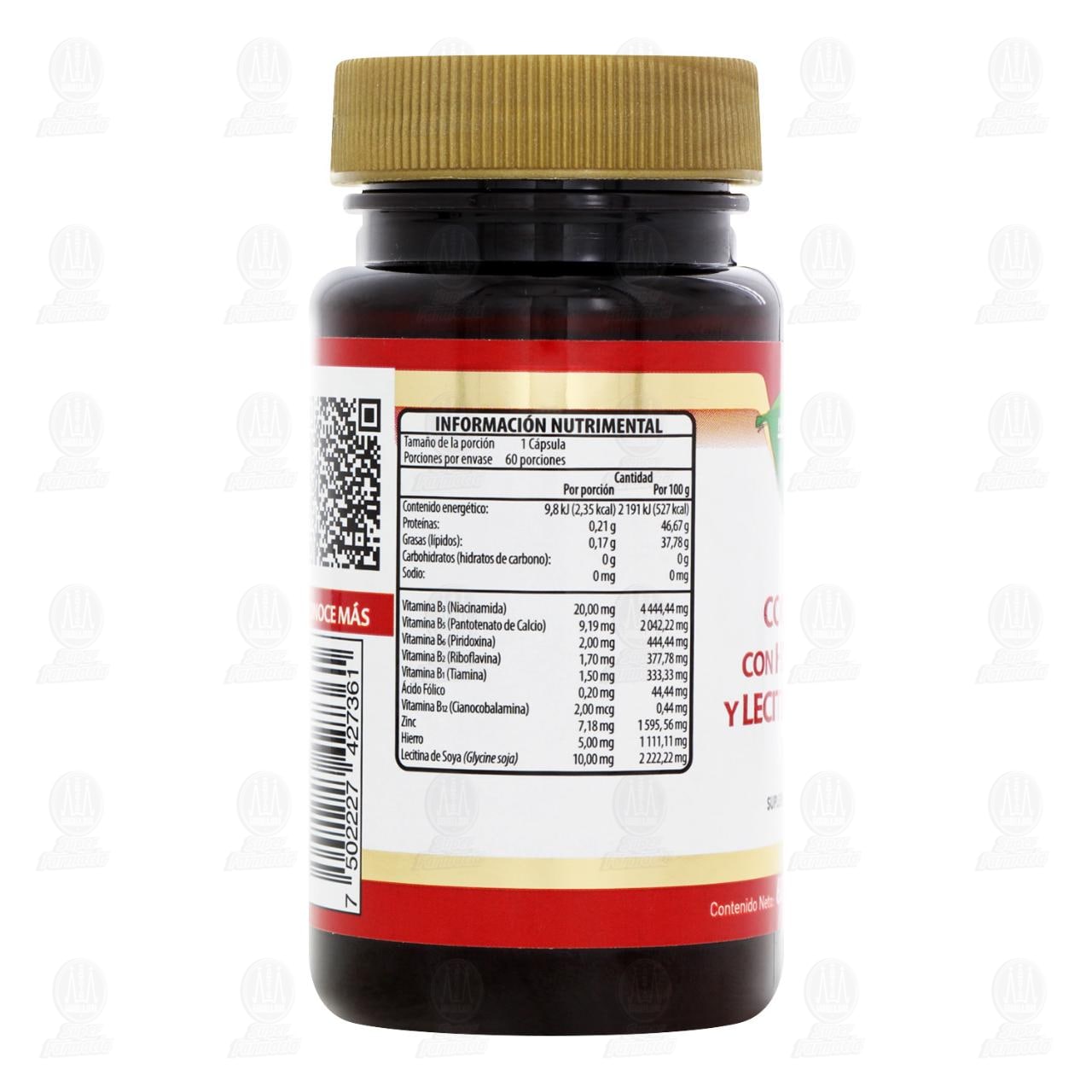 Complejo B con Hierro Zinc y Lecitina de Soya, 60 Cápsulas Pharmalife Natura.
