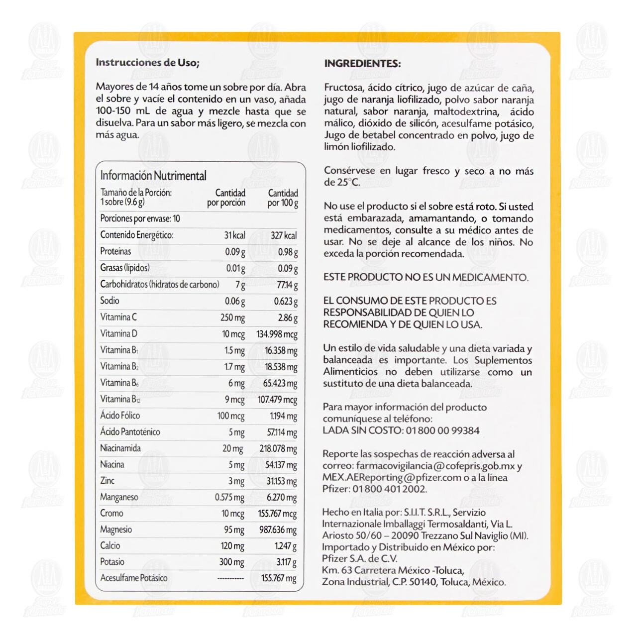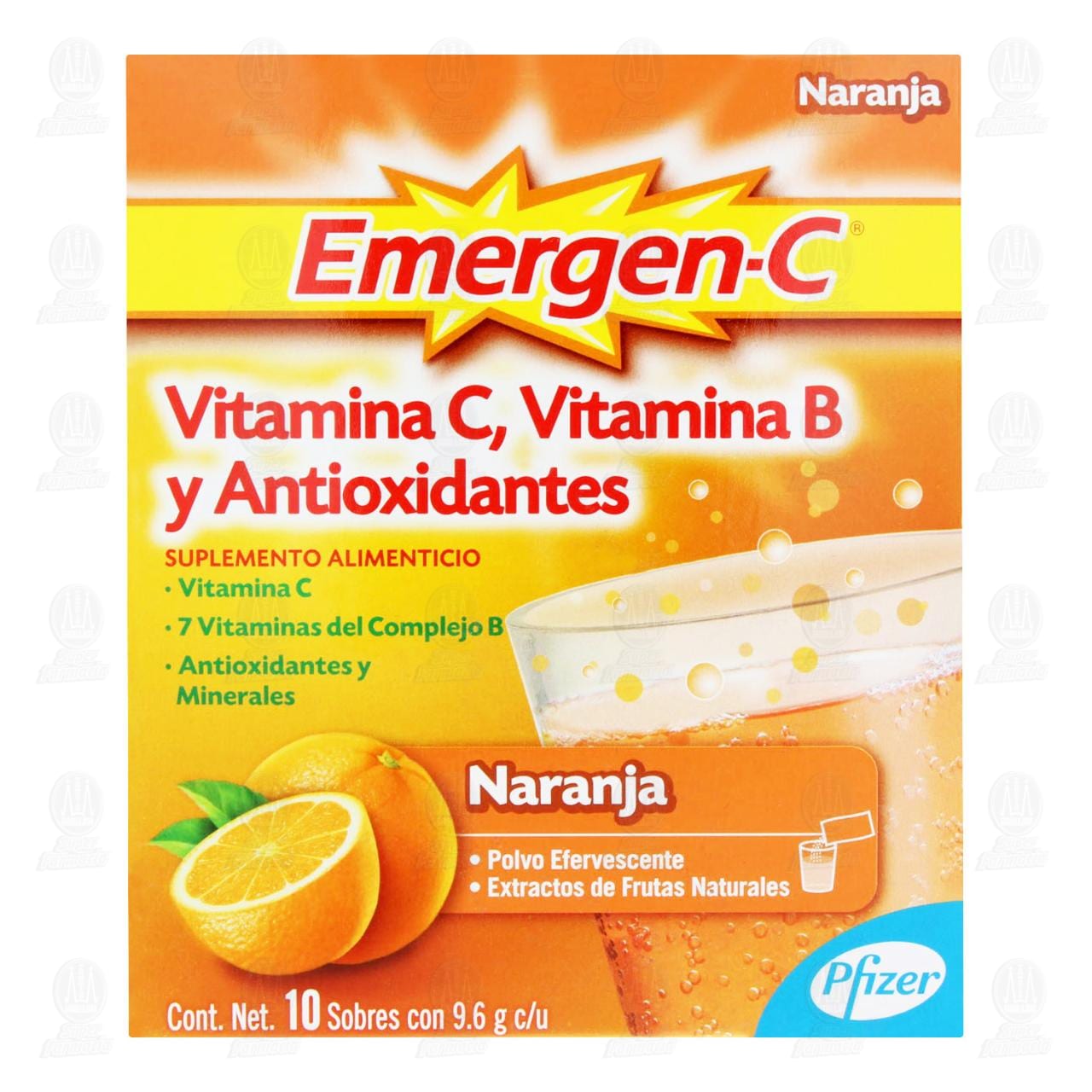 Emergen-C Sabor Naranja, 10 Sobres Efervescentes.